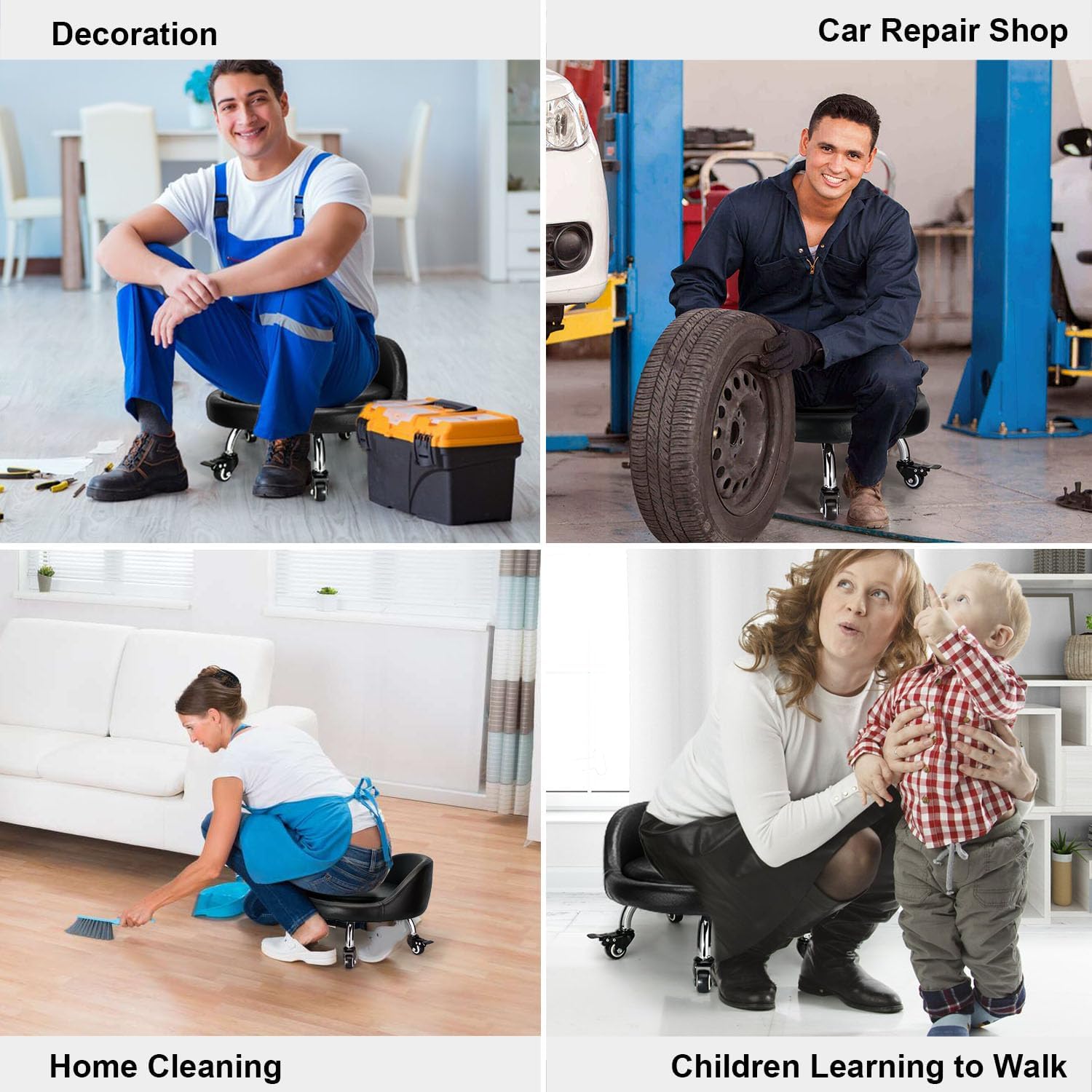 - ✨【Sturdy and Durable】 Industrial-grade Heavy-duty metal frame, the maximum weight capacity of this roller stool is 450 pounds.stronger bearing capacity, the seat is reasonably high and comfortable,meeting most needs.
