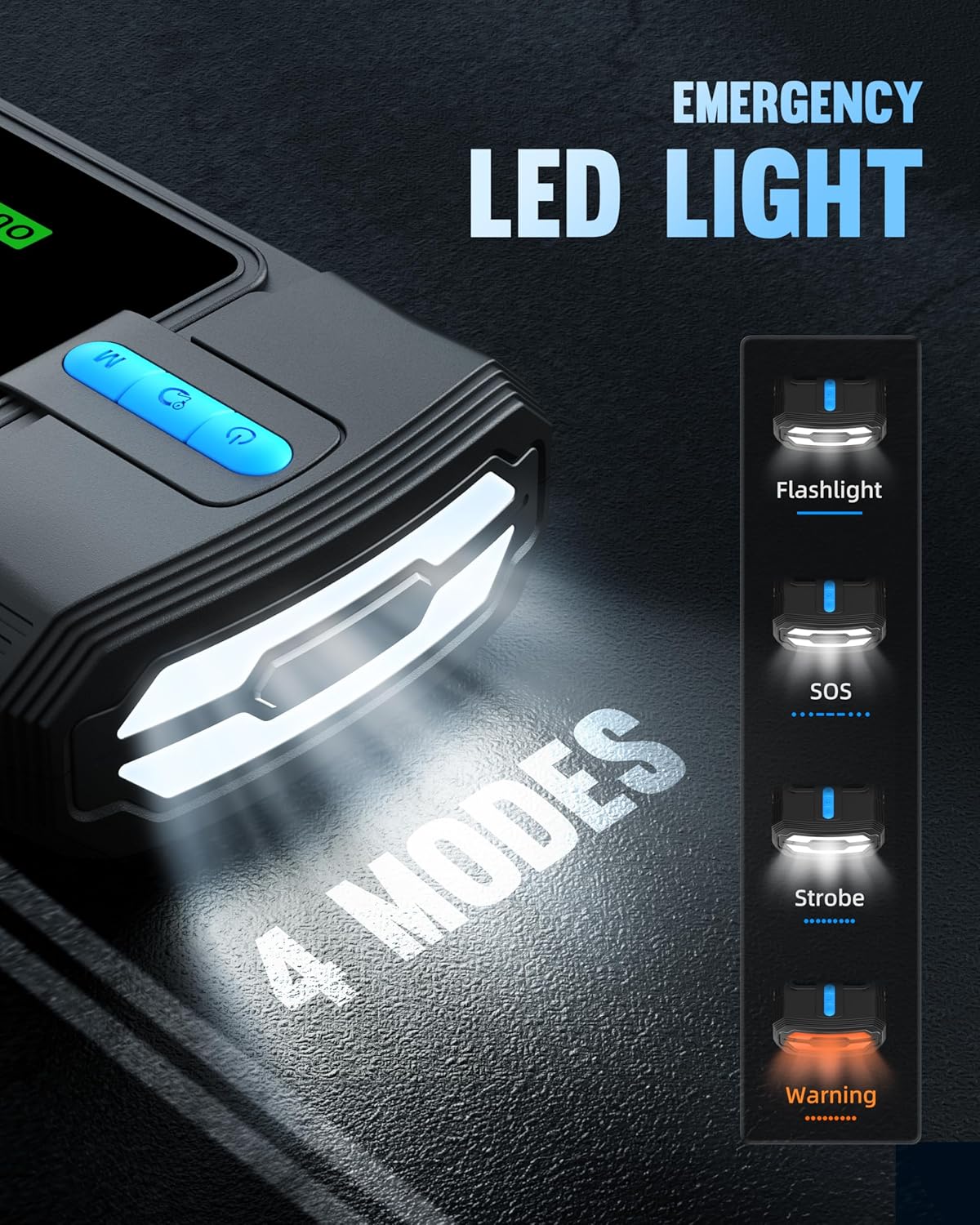 Jump Starter with Air Compressor, 3000A 160PSI Car Battery Jump Starter for 9.0L Gas & 8.0L Diesel Engines, 12V Portable Car Jumper with LCD Display & 4-Mode LED Flashlight