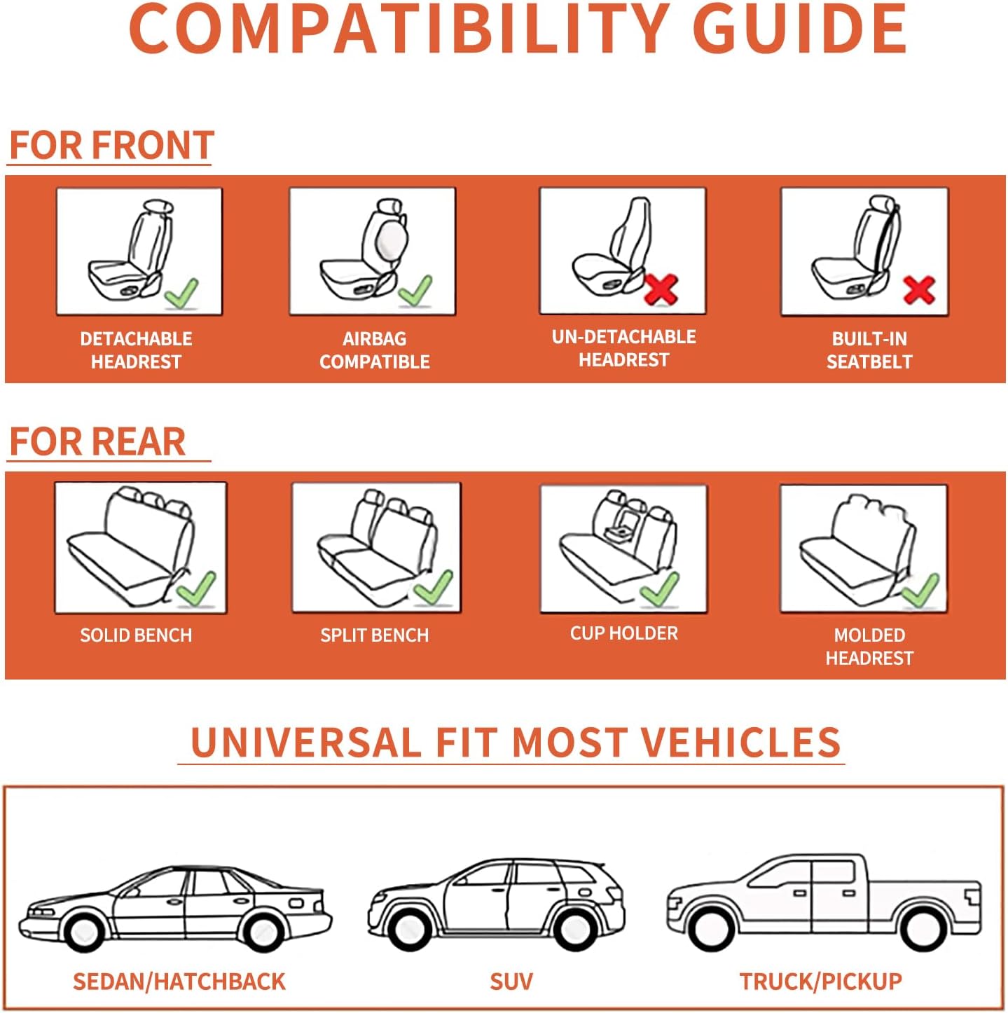 - ✨ROCK-SOLID NON-SLIP GRIP:Stay securely seated thanks to silicone anti-slip dots and reinforced hooks. Covers stay perfectly anchored without shifting, even during sharp turns or bumpy rides. Install in 30 minutes – no tools needed!