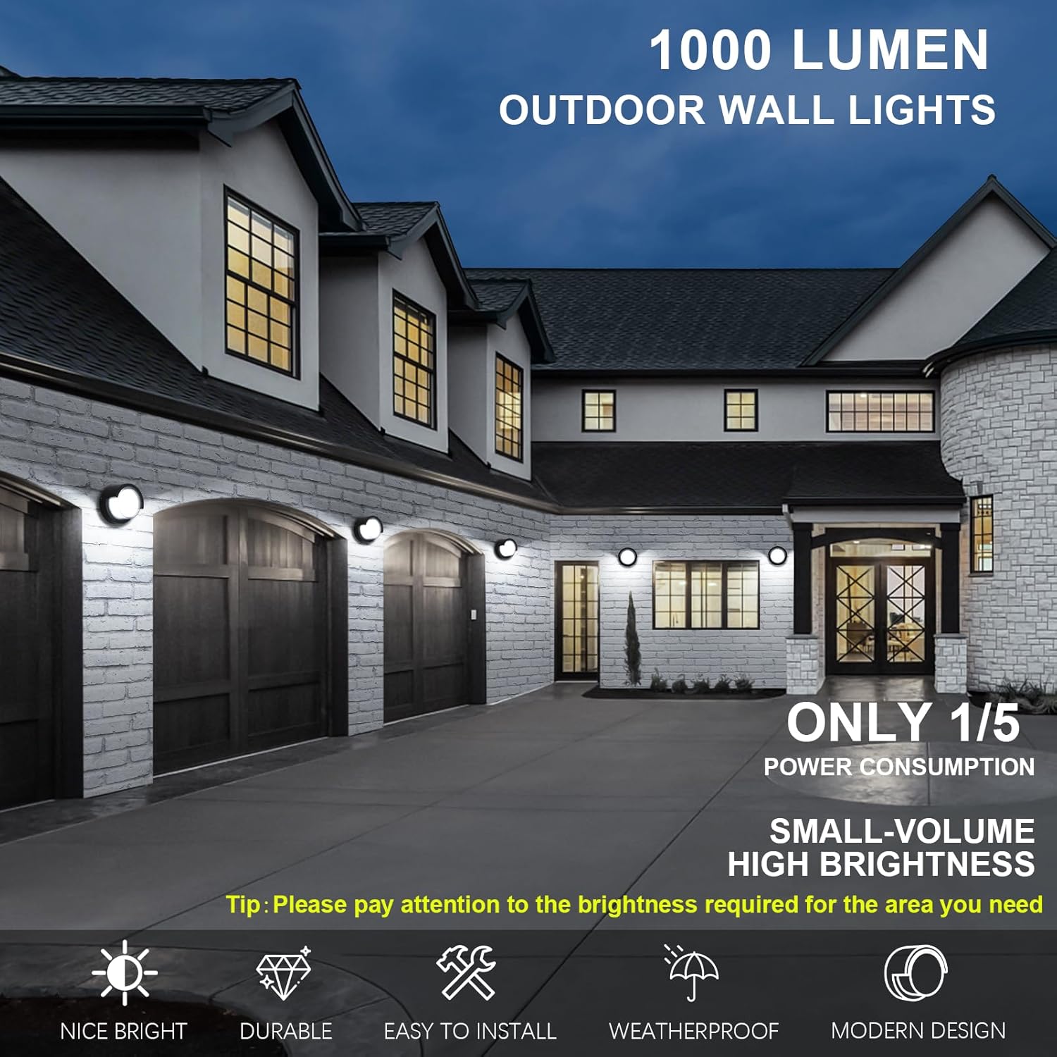 - Surprisingly Excellent Lighting: 1000LM High brightness LED outdoor wall light, RA>85 6000k Daylight light is soft and not harsh, round design realizes wide angle lighting, even light without dark corners and shadows, even at dark night, it can also clearly illuminate every corner