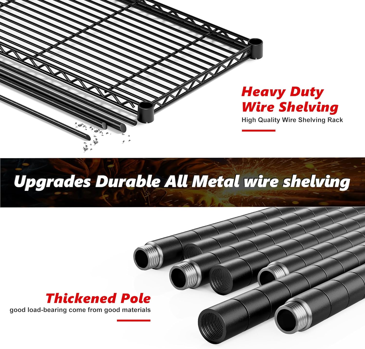 - 【61.7" W*72.4" H*15.8" D Monster Size Garage Shelving】61.7"W pantry shelves has three times the capacity of the market shelves, which can easily meet your storage needs. This extra wide wire shelving is ideal for garages, basements, kitchens, or commercial spaces like restaurants and supermarkets.