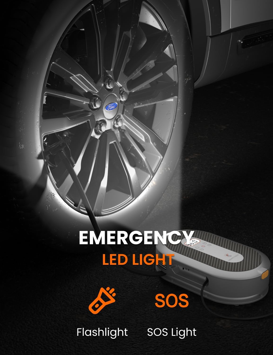 - LED Light: LED light allows the inflating to work at dark nights. 5-10 minutes of continuous inflating, please let the air compressor rest and cool for a while.