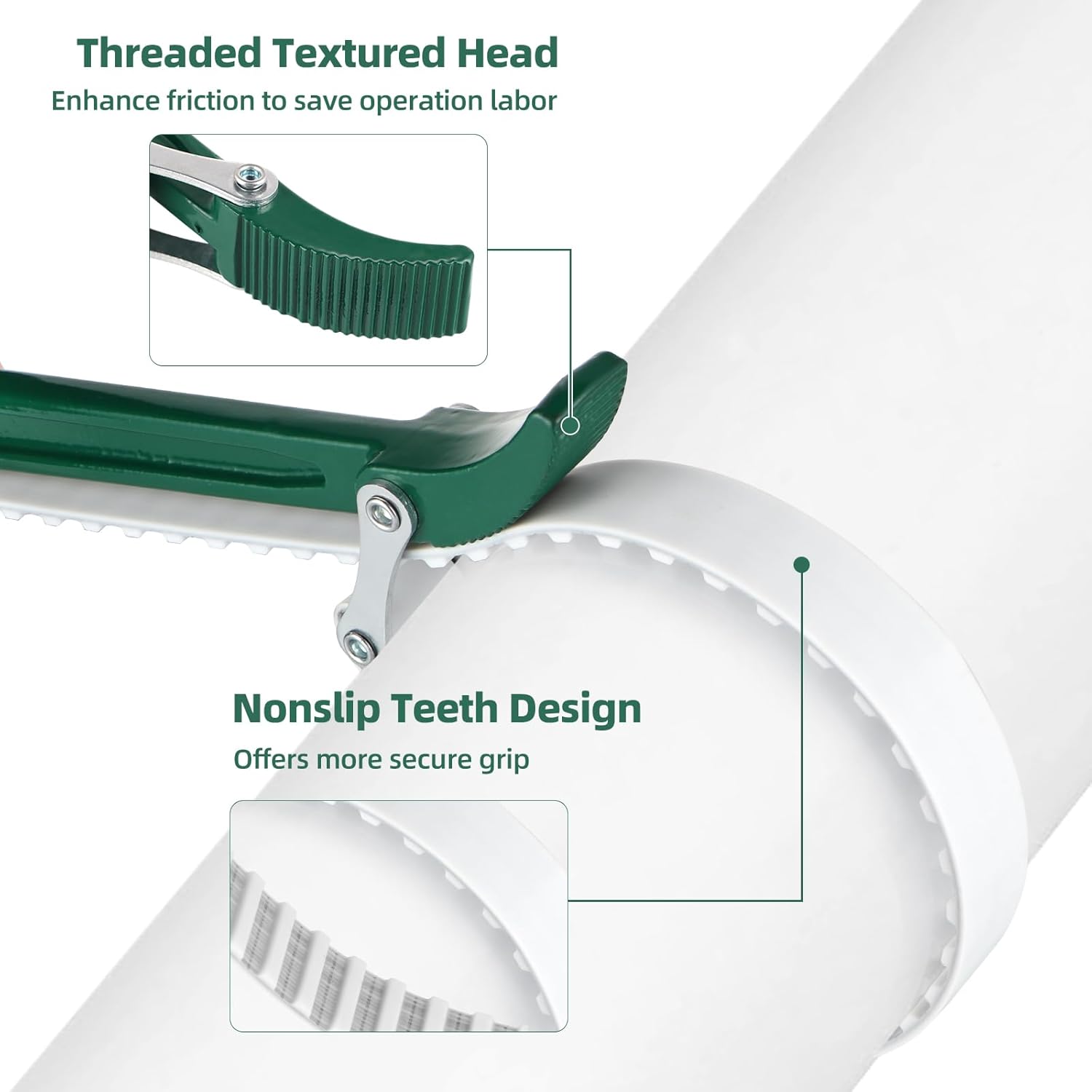 - The handle designed with threaded texture to save operation labor; And the strap in nonslip teeth design offers more secure grip
