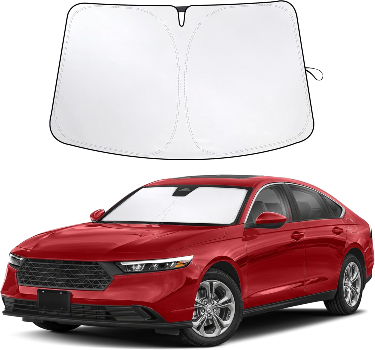 - Dual-Layer Thermal Insulation – Engineered with a dual-layer design, featuring a reflective silver outer surface and a heat-insulating black inner lining. This high-performance front windshield sunshade lowers interior temperatures and reduces heat build up while parked. Acts as a heat shield and sun blocker for sedans, making it a perfect accessory for summer use or daily driving in hot climates. Keeps your Honda Accord cabin cooler and more comfortable.