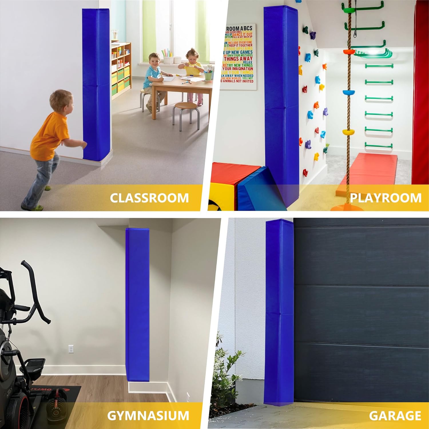 Wall Corner Guards & Edge Protector, Heavy Duty Wall Corner Protective Safety Padding, All-Weather 2 Sides Corner Pad for Gyms, Basketball Court, Playrooms, Garages,etc. (Blue, 6FT Tall 6in Sides)