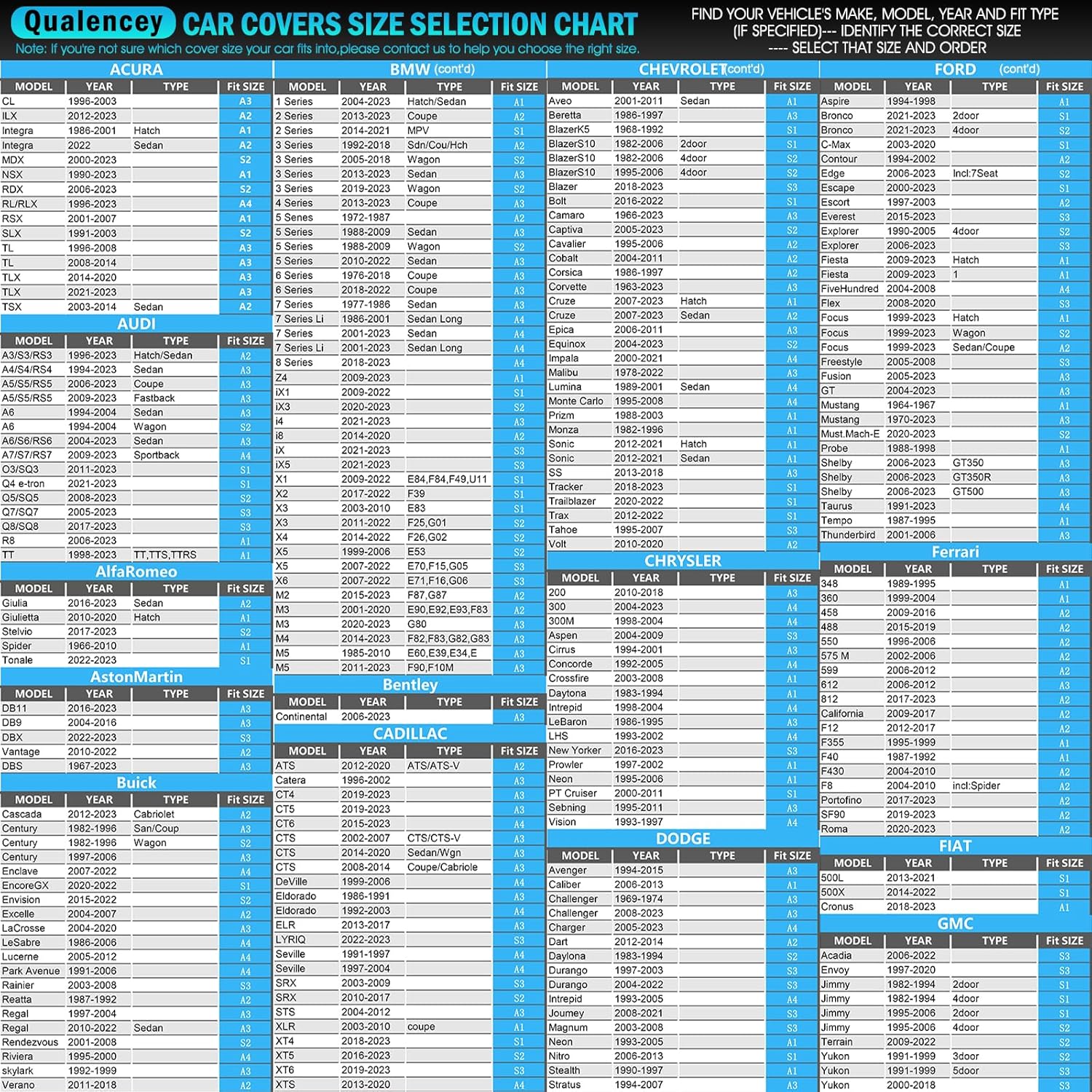 - 【Complete Protection】: The Qualencey car cover is perfect for indoor and outdoor use, protecting your car from UV rays, snow, rain, frost, sand, dust, leaves, branches, and birds, whether in sunlight or cold weather.