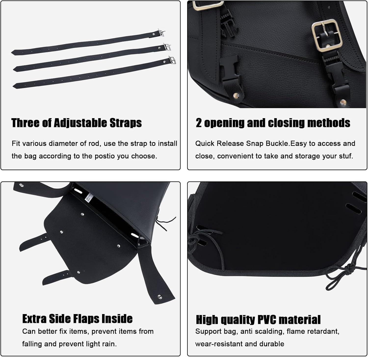 - 【Easy to Install】The motorcycle swing arm bag come with tie downs for mounting to make it easy to strap on back of the motorcycle. You can install the bag directly on handlebars, sissy bar, front forks, windshield, tail rack, and side frame.