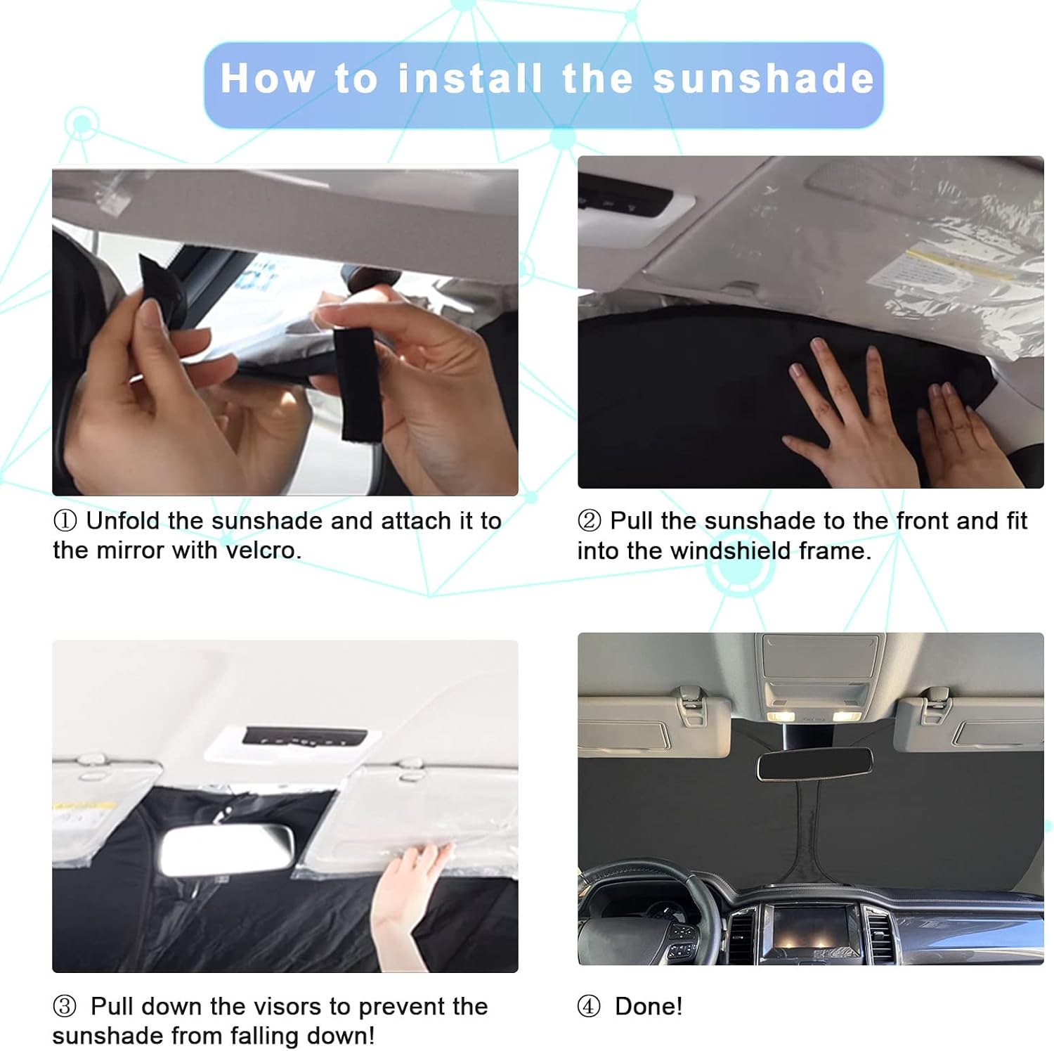 - 4.No matter what season you should need it: In summer, ultraviolet rays and heat light are very strong, sunshade for car windows keep your beloved car cool and in winter, when the sky is always clear, ultraviolet rays (a very powerful Harmful light) also exist. You need this Sun Visor for sun protection and UV protection at all times.