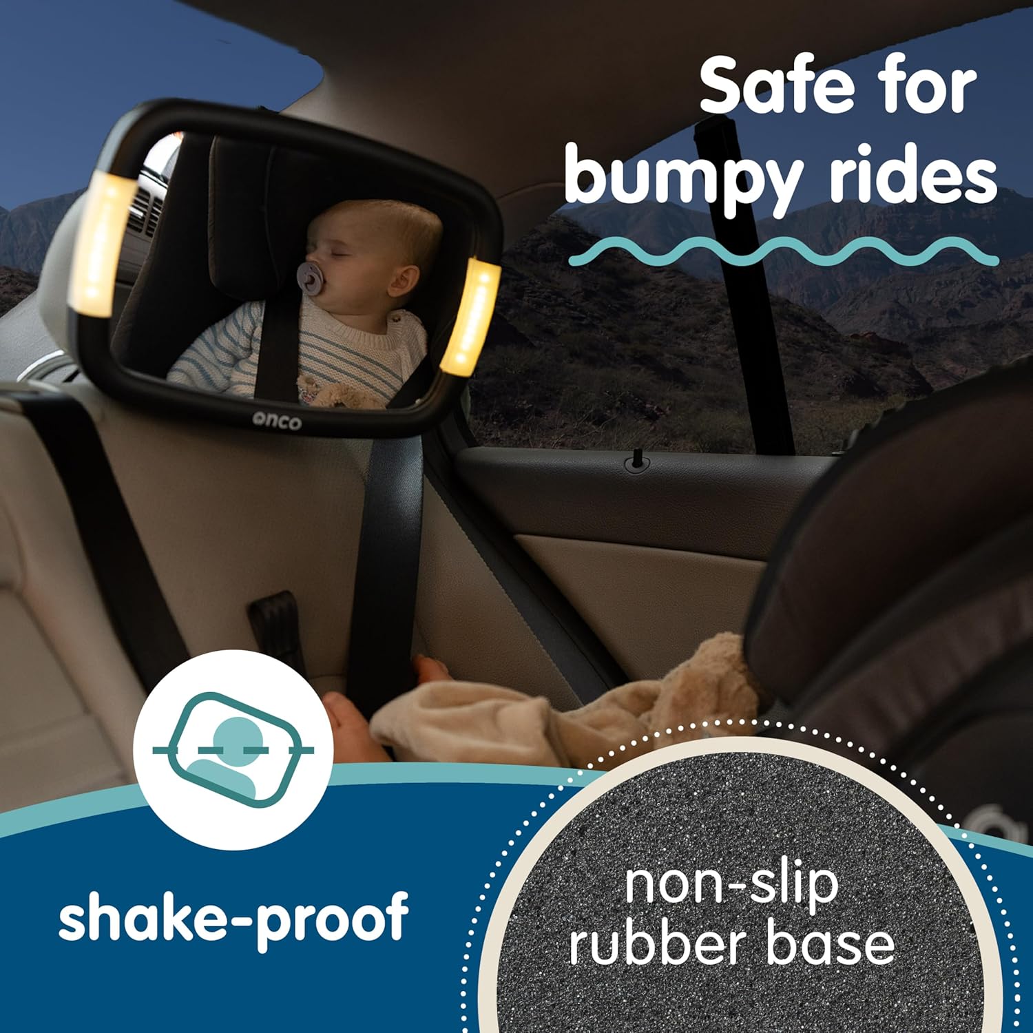 - SHAKE-PROOF & SHATTERPROOF: The baby car mirror with light is made from shatterproof plastic and holds its position without wobbling, keeping your baby safe on even the bumpiest of rides!
