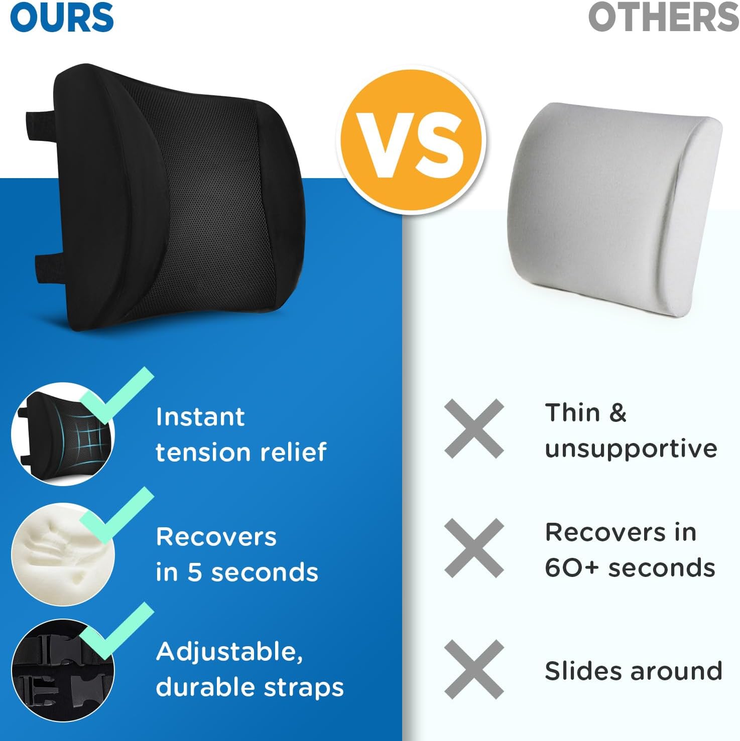 - PERFECT WORK WITH ALL KINDS OF CHAIRS: If you spend a lot of time sitting on office chair and driving in car, your back and waist feel very stiff,this lumbar support pillow will perfectly help you. It is designed ergonomically to relieve your lower back pain and back tightness, support you to achieve a healthy posture and helps maintain the natural curve of the spine.