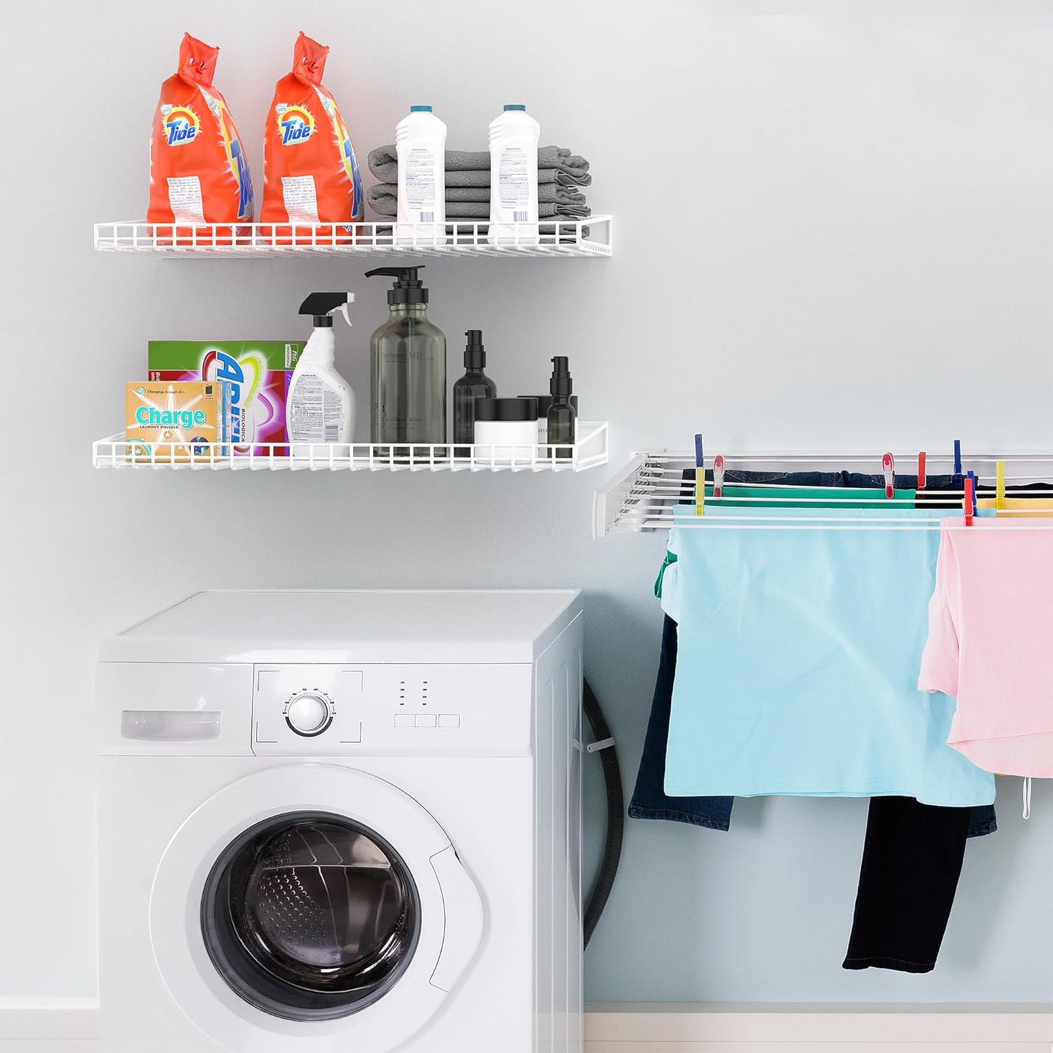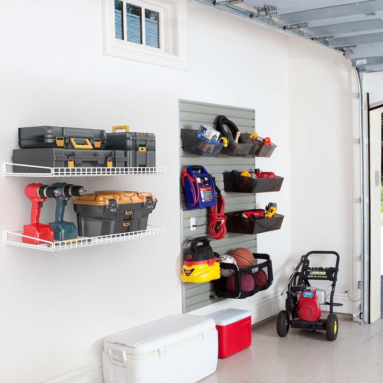 Wallmaster Heavy Duty Garage Wall Shelving 2 Pack 23.6"x11.8" Metal Wire Shelves Wall Mount Mesh Storage Rack for Garage, Office, Basement and Kithcen, max Load 65 lbs (White)