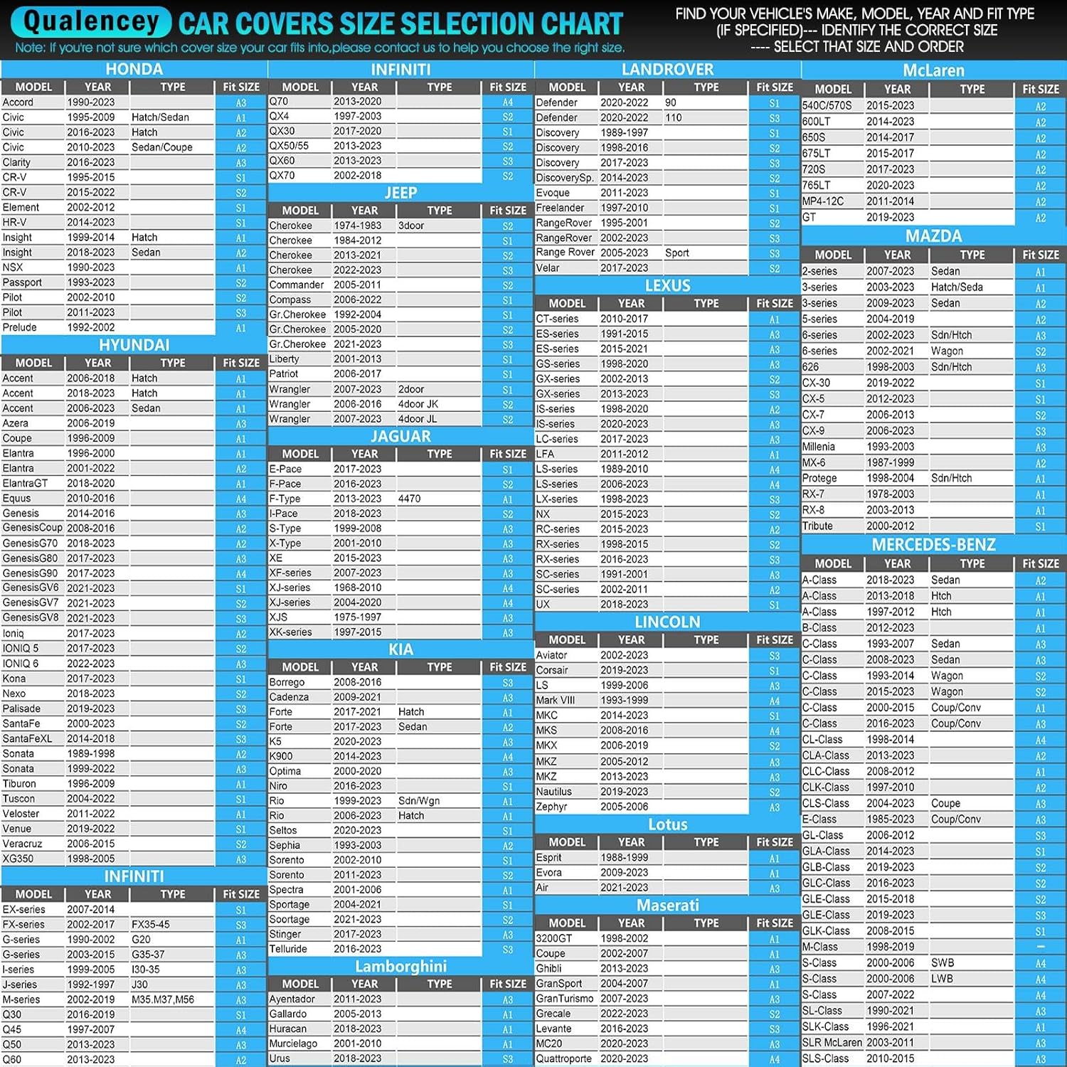 - 【Complete All-Weather Protection】The Qualencey car cover is perfect for indoor and outdoor use, protecting your car from UV rays, snow, rain, frost, sand, dust, leaves, branches, and birds, whether in sunlight or cold weather.