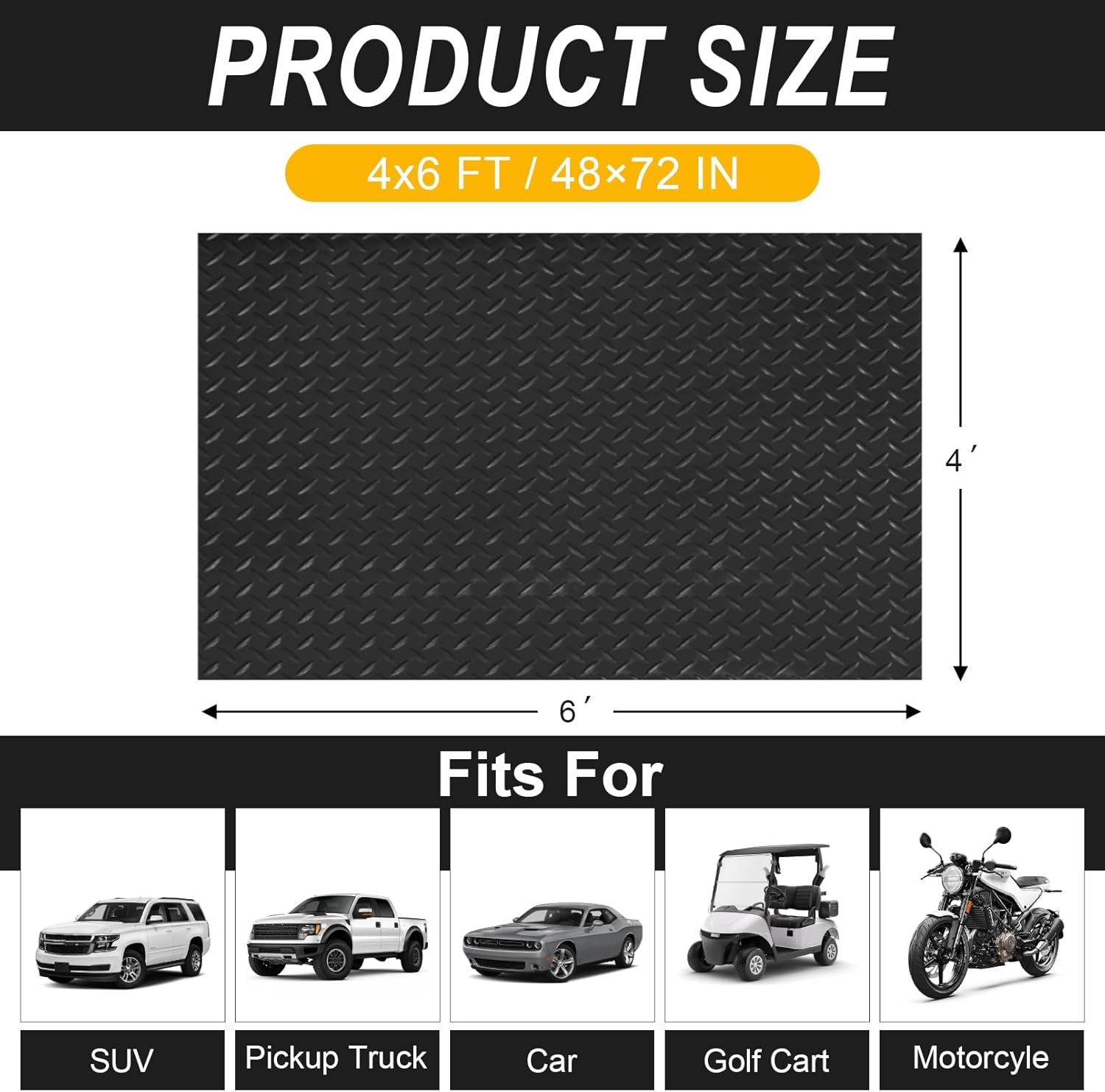 - Generous Dimensions: Boasting a spacious 4x6ft coverage, totaling 24 square feet, this floor mat is designed to accommodate a variety of garage spaces. The material can be cut so that it can be applied to a variety of places