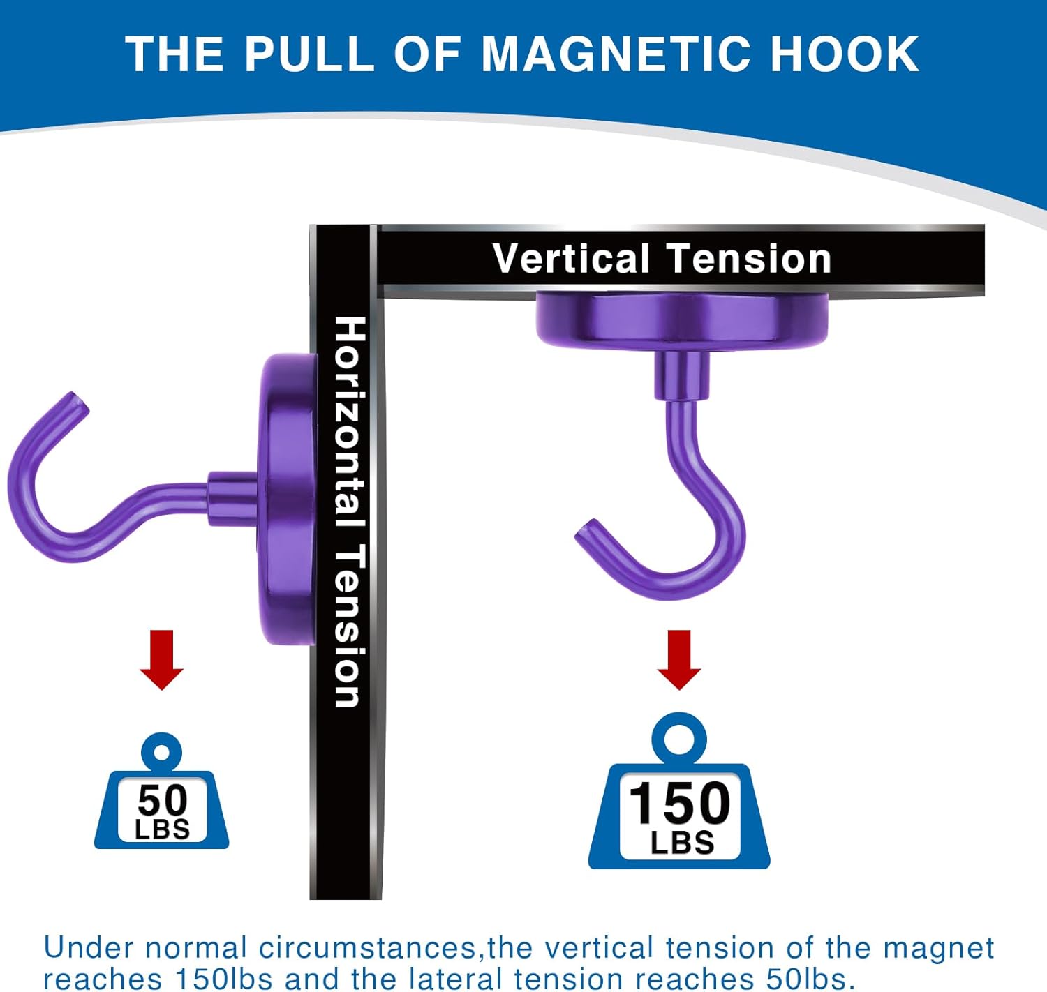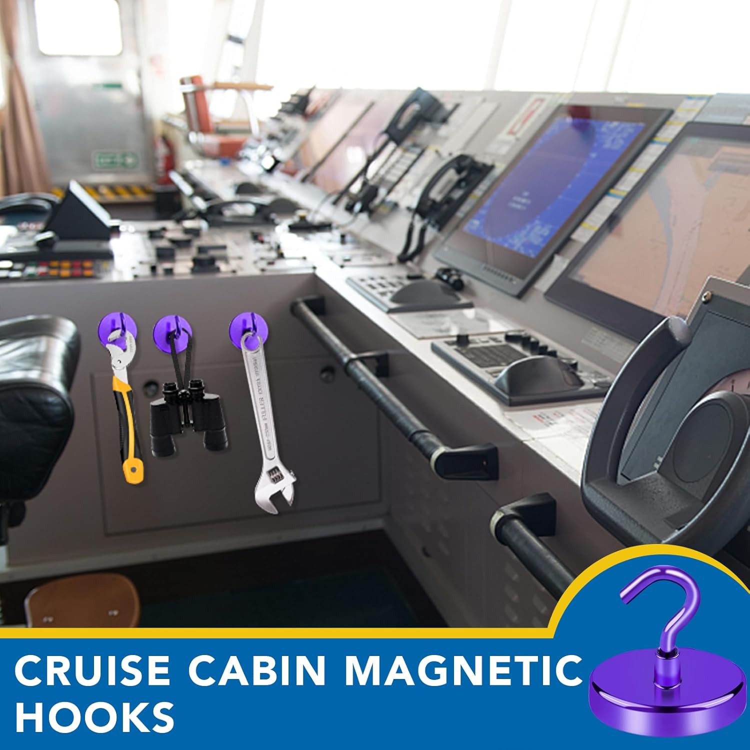 LOVIMAG Cruise Essentials, 150Lbs Cruise Door Magnets, Purple Magnet Hooks for Cruise Cabin Strong Magnetic Hooks for Hanging, Refrigerator, Celling -6 Pack