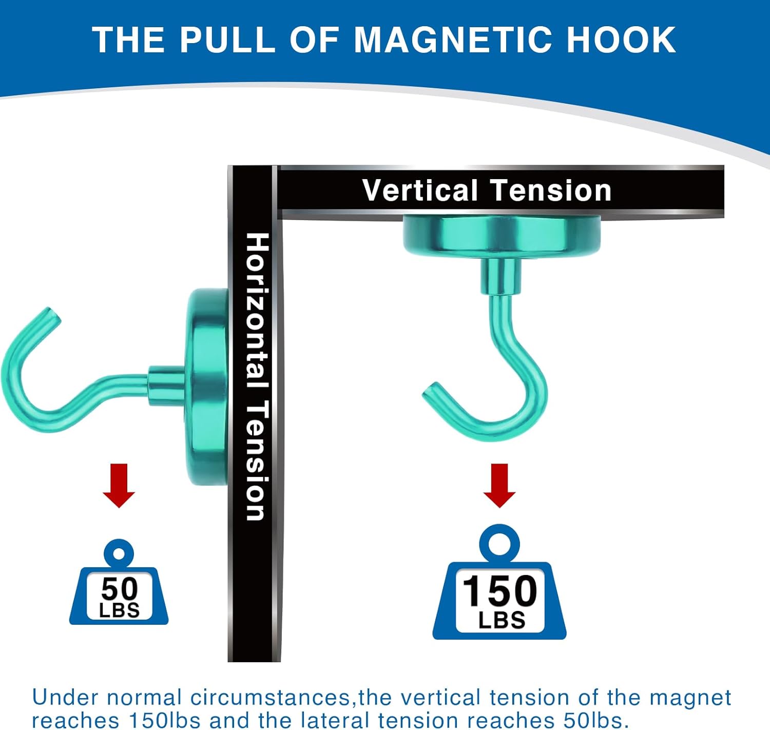 LOVIMAG Cruise Essentials, 150Lbs Door Magnets, Green Magnet Hooks for Cabin Strong Magnetic Hooks for Hanging, Refrigerator, Celling - 6 Pack