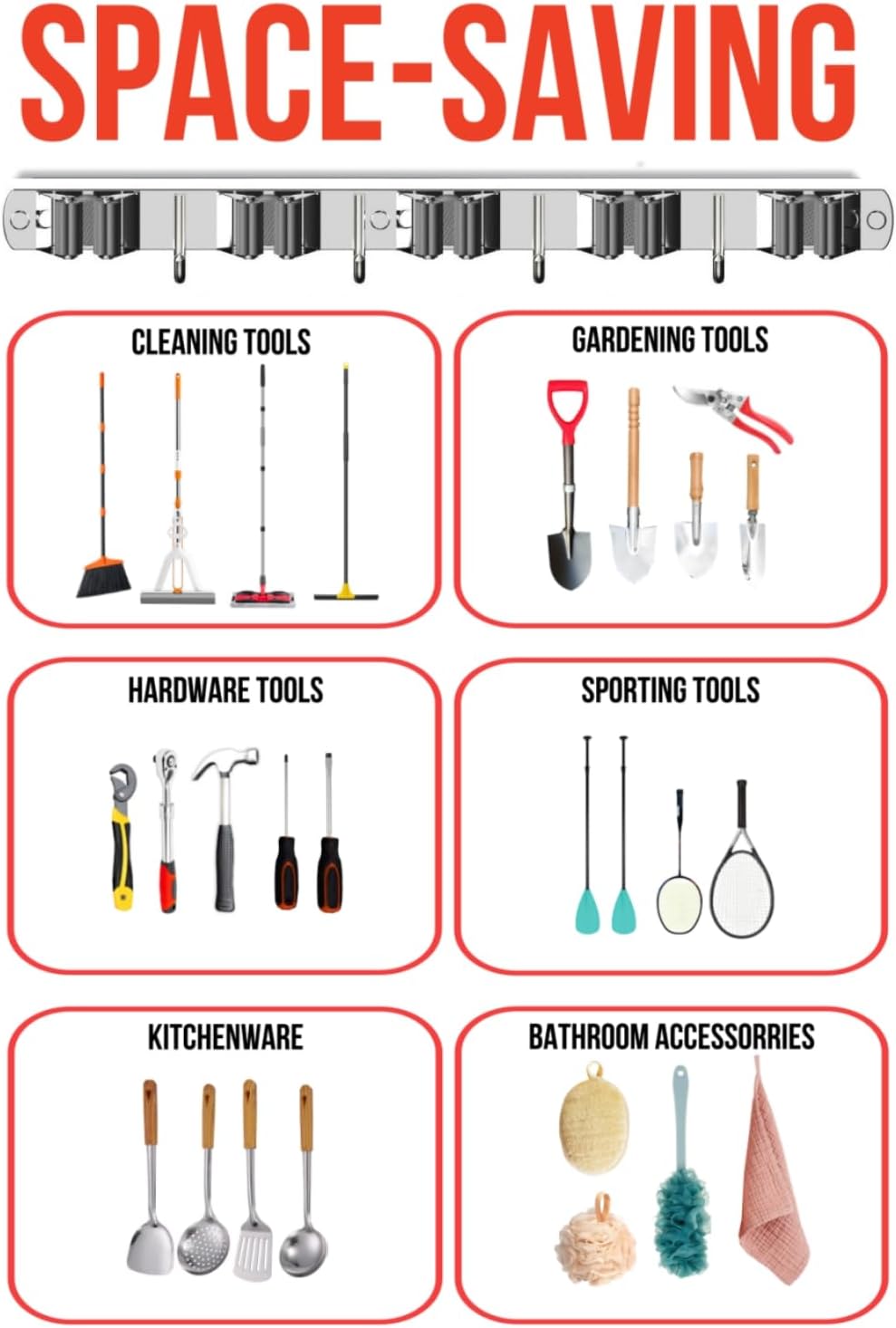- WIDE APPLICATIONS: The broom storage organizer is designed to hold various household objects to save space and decorate. You can easy access your broom, mop, swifter, dust pan, small vacuum, brushes, gloves, rakes, shovels and more