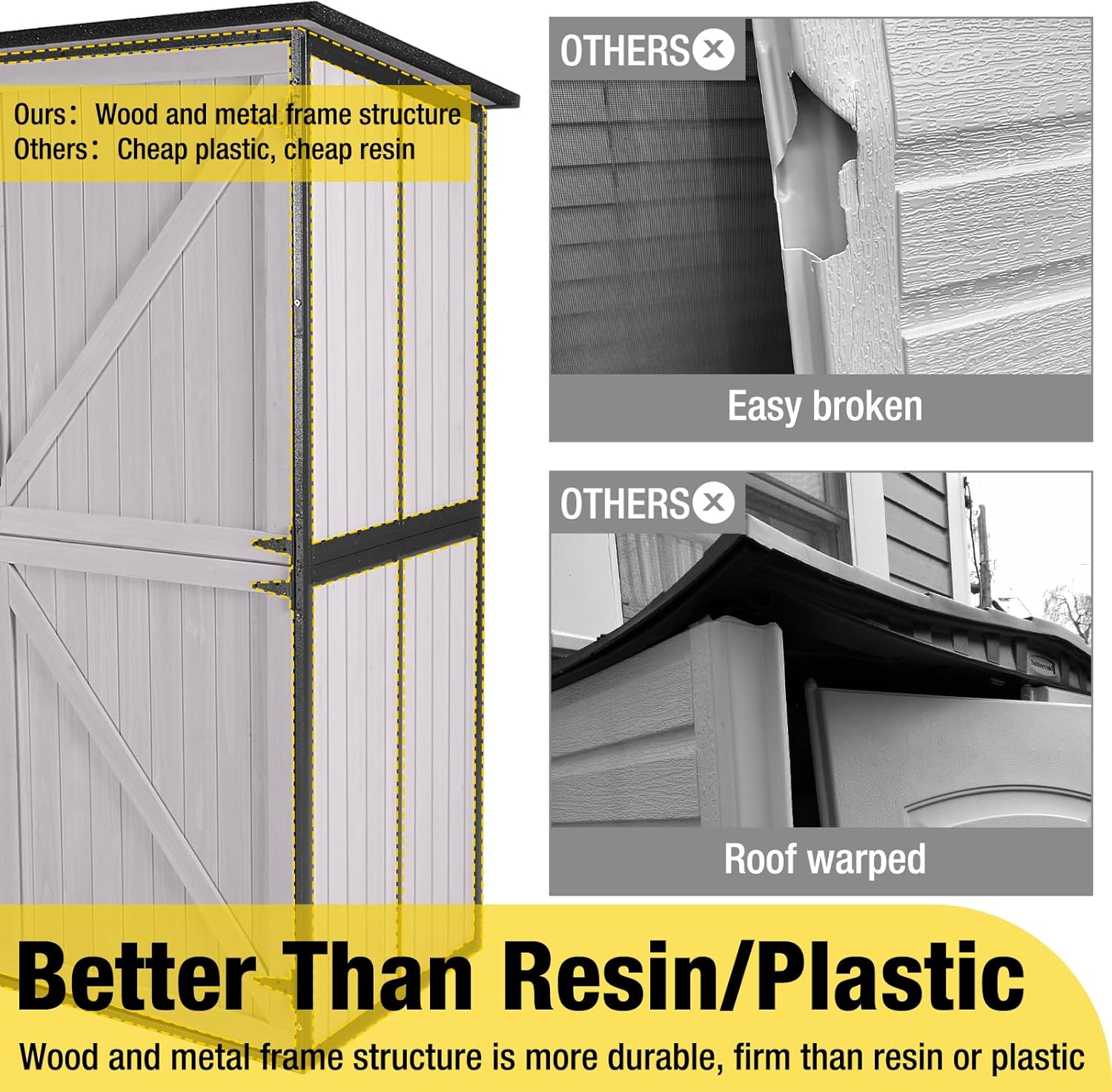 - Stable Construction: Reinforced with a robust metal frame, our outdoor garden shed offers unparalleled stability, ensuring it withstands various weather conditions for long lasting durability