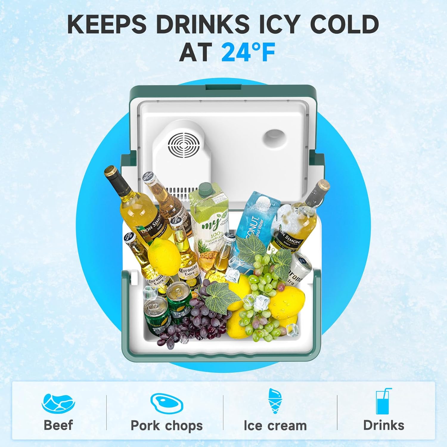 - Large Capacity Space: This 26 Quart(25L) plug-in cooler can 25 bottles of 330ml cola,and providing enough space to store your drinks,food,snack.