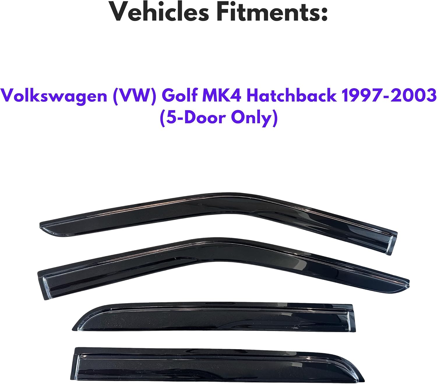 - 【Perfect Fit】KPY window visors rain guards vent deflectors compatible with Volkswagen (VW) Golf MK4 Hatchback 1997 1998 1999 2000 2001 2002 2003 (Mugen Style)