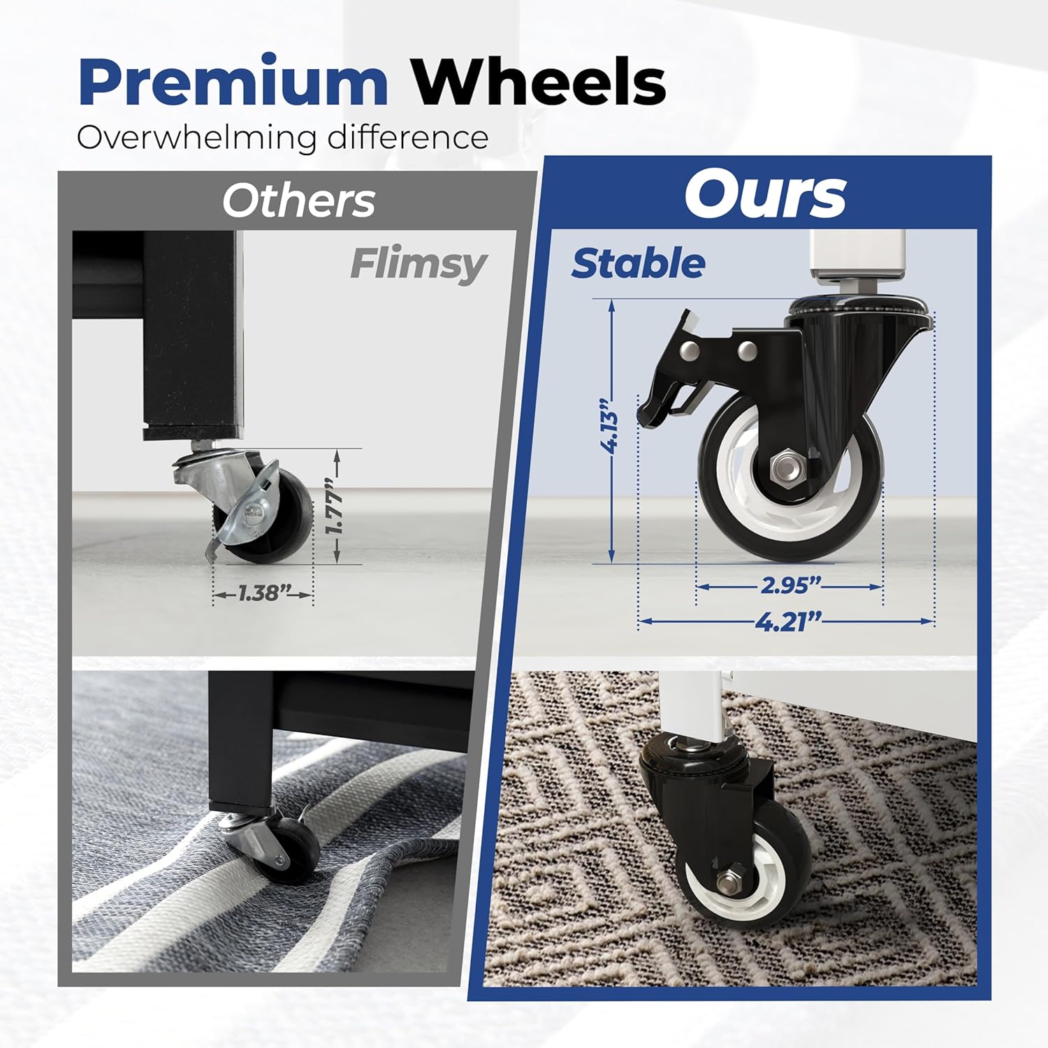 HOMEDANT House White 5-Tier Metal Rolling Cart Shelf Rack Casters Heavy Duty Wheel Shelving Unit Adjustable Utility Storage Shelves Organizer Shelf Kitchen Garage 36.2" W x 16.5" D x 69.5" H 4Pack