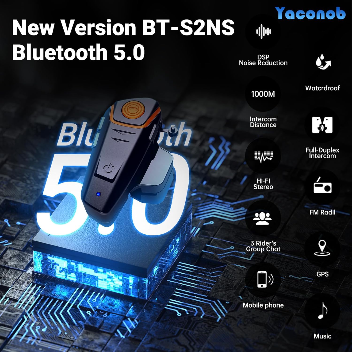 Helmet Bluetooth Headset Bt-S2ns, 1000m Helmet Communication System, Connect Up to 3 People 2 People Talk at The Same Time(2pack)