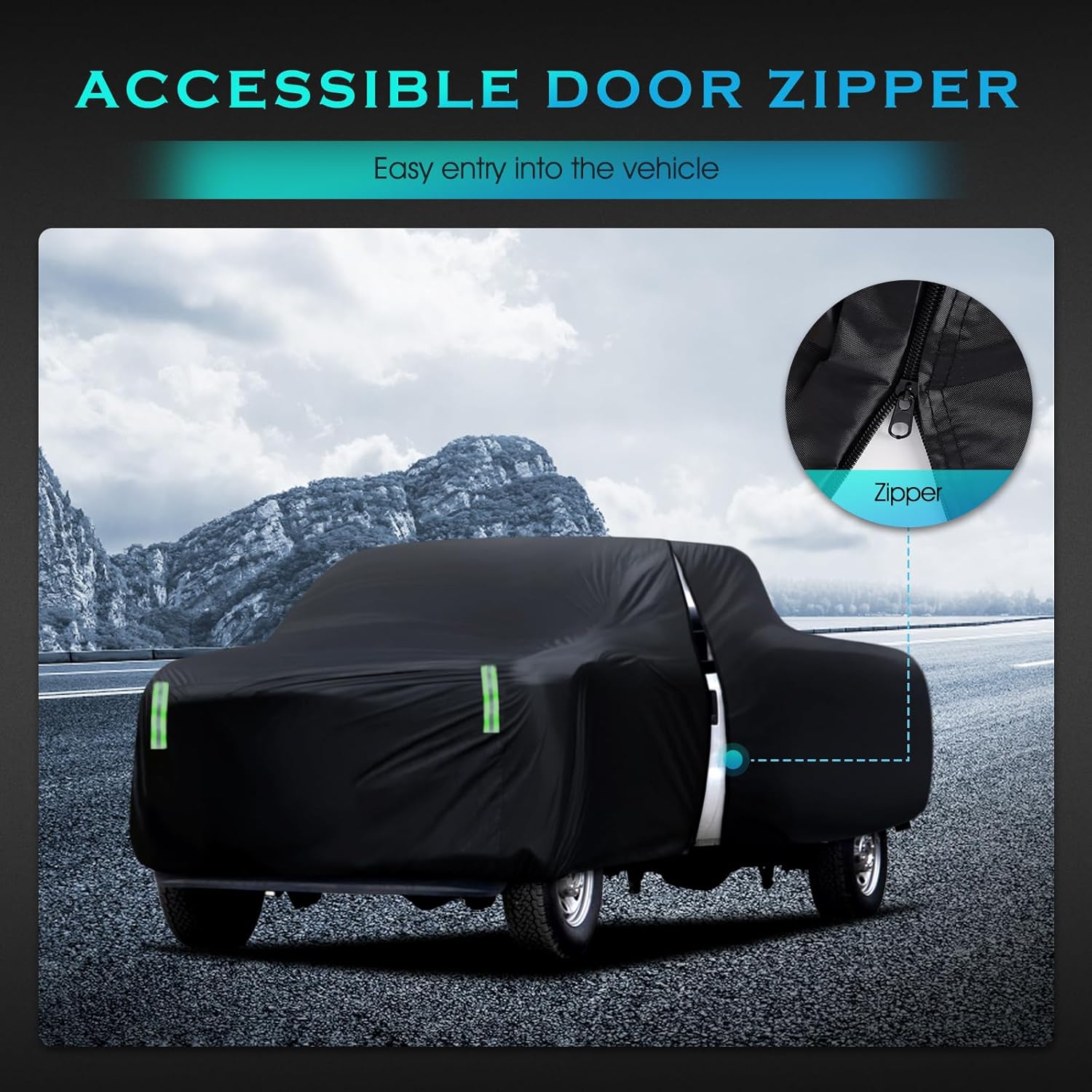 - 【Truck Cover in Size T5】: Universal fit for Pickup Truck which length is 251 To 266 inch (NOT FOR Sedan or SUV). Suitable for Chevrolet Silverado 1500-3500 Crew/Double Cab 8' Box, FORD F-250 & F-350 SuperCab/Crew Cab 8' Box, FORD F-250 & F-350 Crew Cab 8' Box, TOYOTA TUNDRA Double/Crew Cab 8'-8.1' Box, ect. Pls confirm truck length before your purchase.