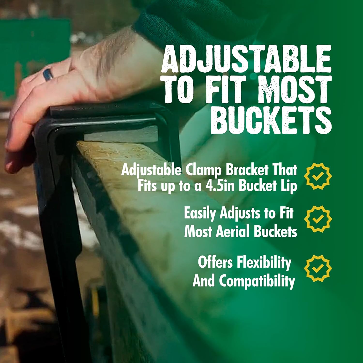 - ADJUSTABLE TO FIT MOST BUCKETS - Chainsaw holder uses an adjustable clamp bracket that fits up to a 4.5in bucket lip. Easily adjusts to fit most aerial buckets, offering flexibility and compatibility across various work configurations
