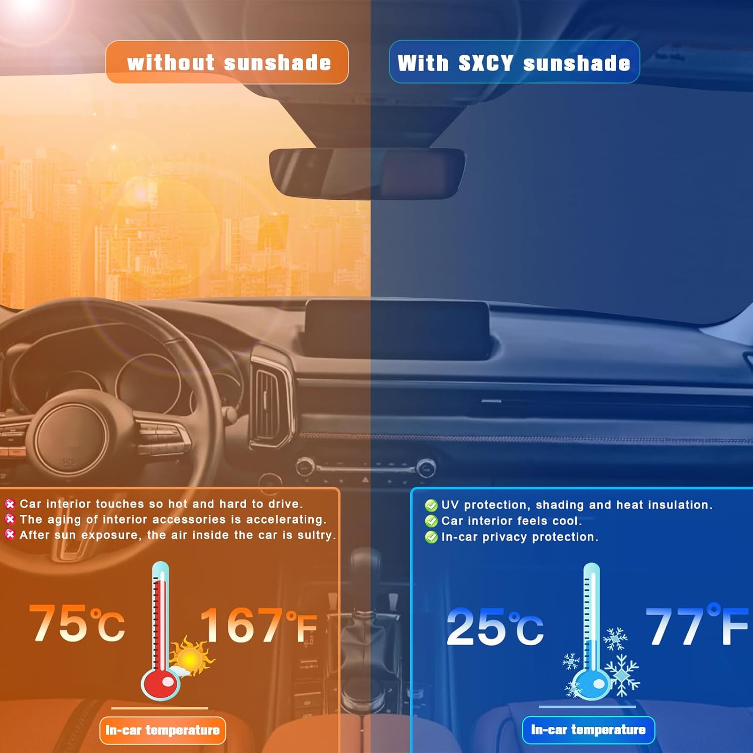 - 2.Sun Protection: Solve your concerns about parking for a long time under the scorching sun,prevent the car's interior from getting sunburned and extend your 2023 2024 2025 CX50 Turbo interior accessories’life.