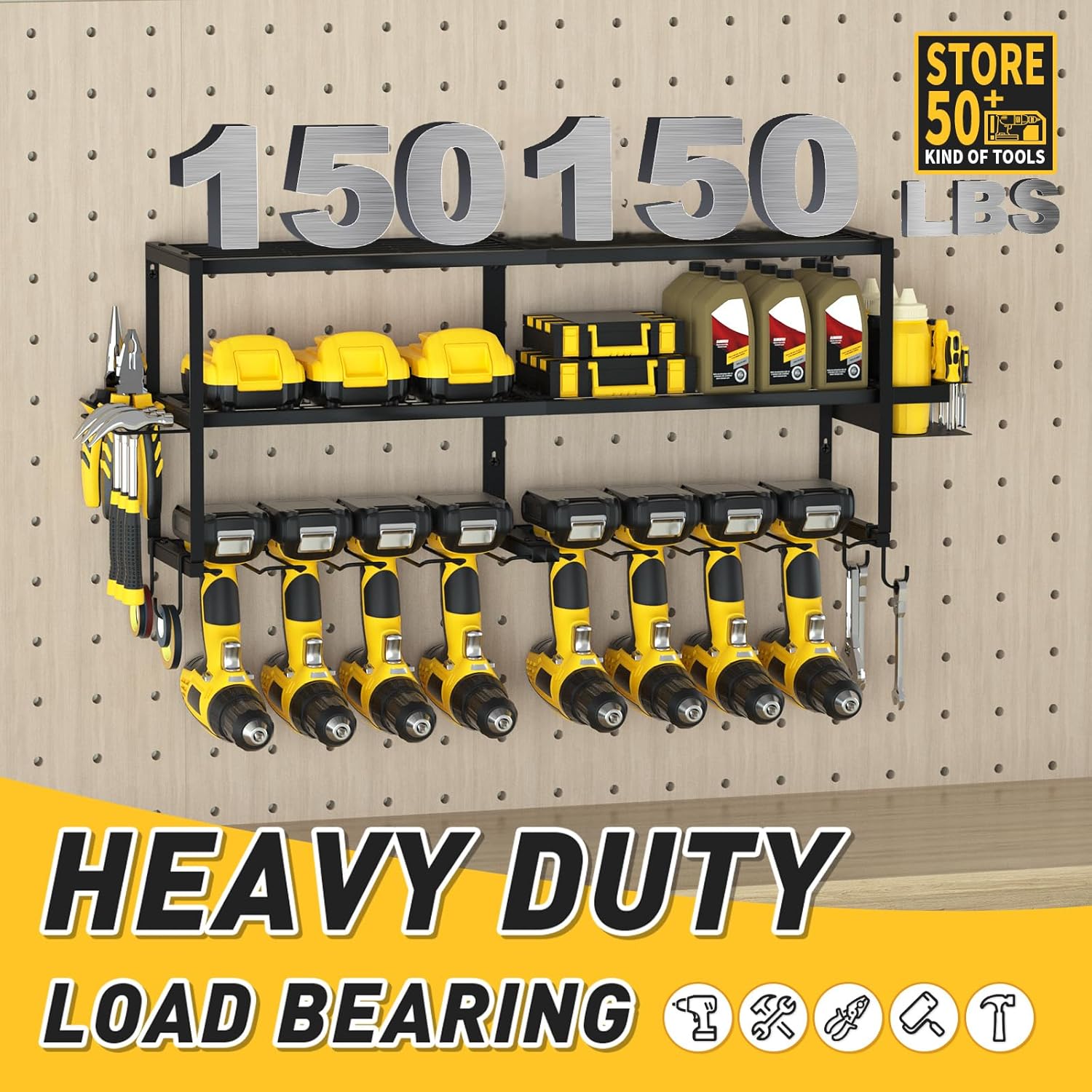 - REINFORCED DURABILITY & HEAVY-DUTY CONSTRUCTION: Built to last, the Mefirt Power Tool Organizer features upgraded welding points and a scratch-resistant, anti-rust coating, ensuring enhanced strength and longevity. Constructed from thickened heavy-duty steel, this rack confidently supports over 300 pounds without bending or breaking. Rigorously tested for strength and stability, it resists deformation and securely stores your heaviest tools, making it the ultimate choice for garages, workshops, or DIY projects.