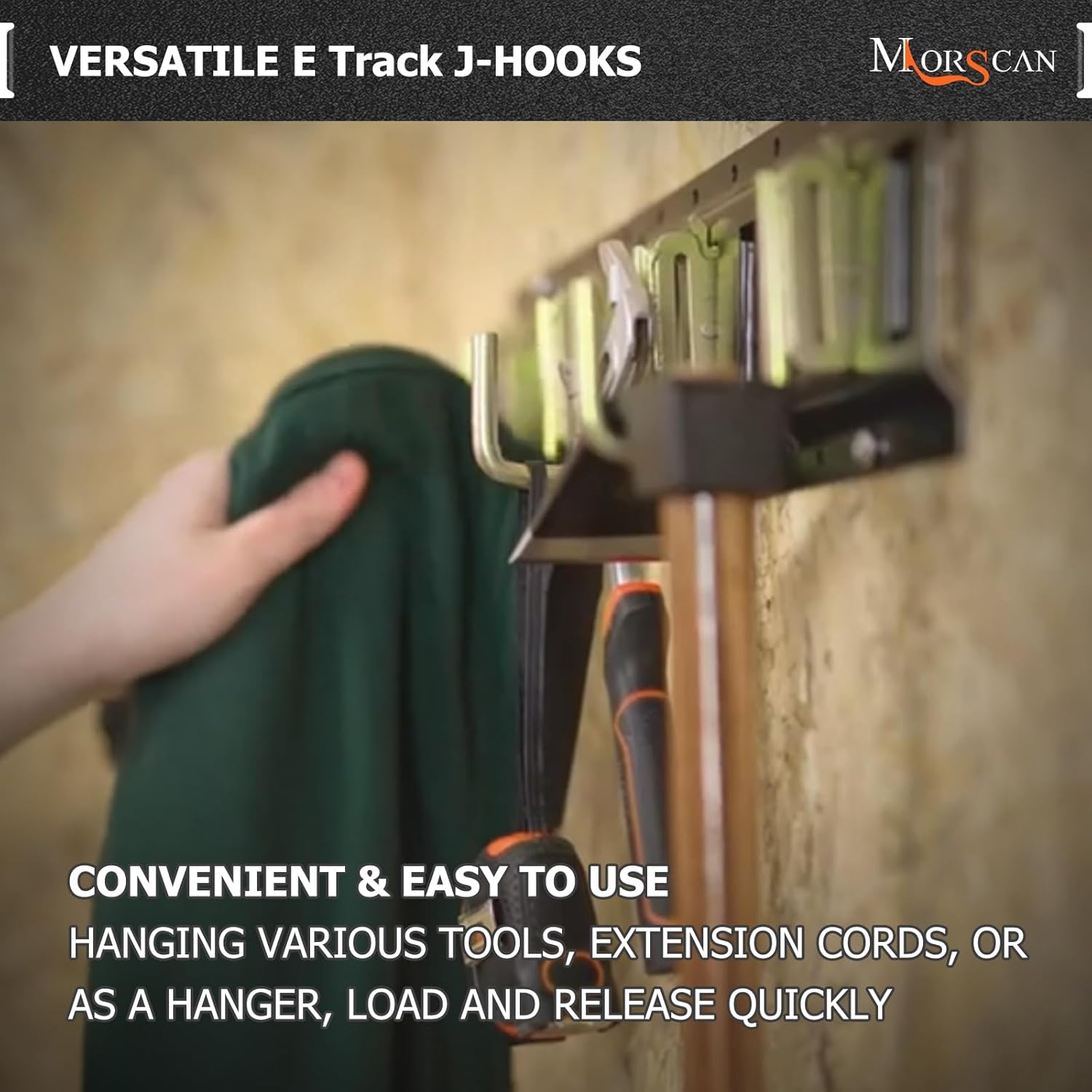 - VERSATILE HOOKS - Hang various tools, accessories, extension cords, straps, cables, wires, hoses, ropes, or as a hanger for your coats or hats with these J hook e track tie down anchor points. Used for Box Truck, Enclosed Trailer, Garage, Vans, Warehouse, Workshop, etc.