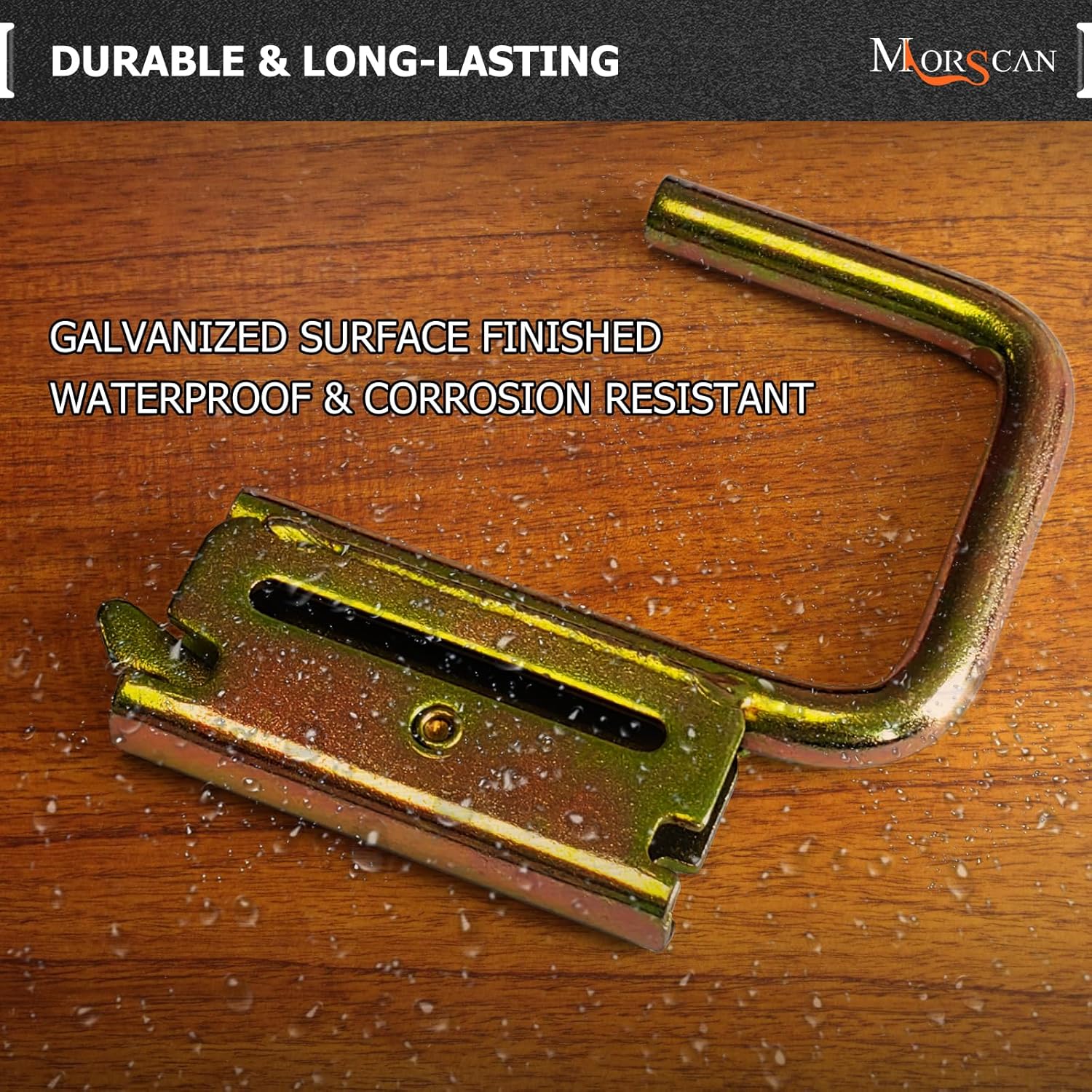 - HEAVY DUTY HOOKS - Strong hooks fit for all E Track/X Track trailer tie-down rails or E port single slots. With 2" inner clearance, 400 pound working load limit, 1,200 pound break strength.