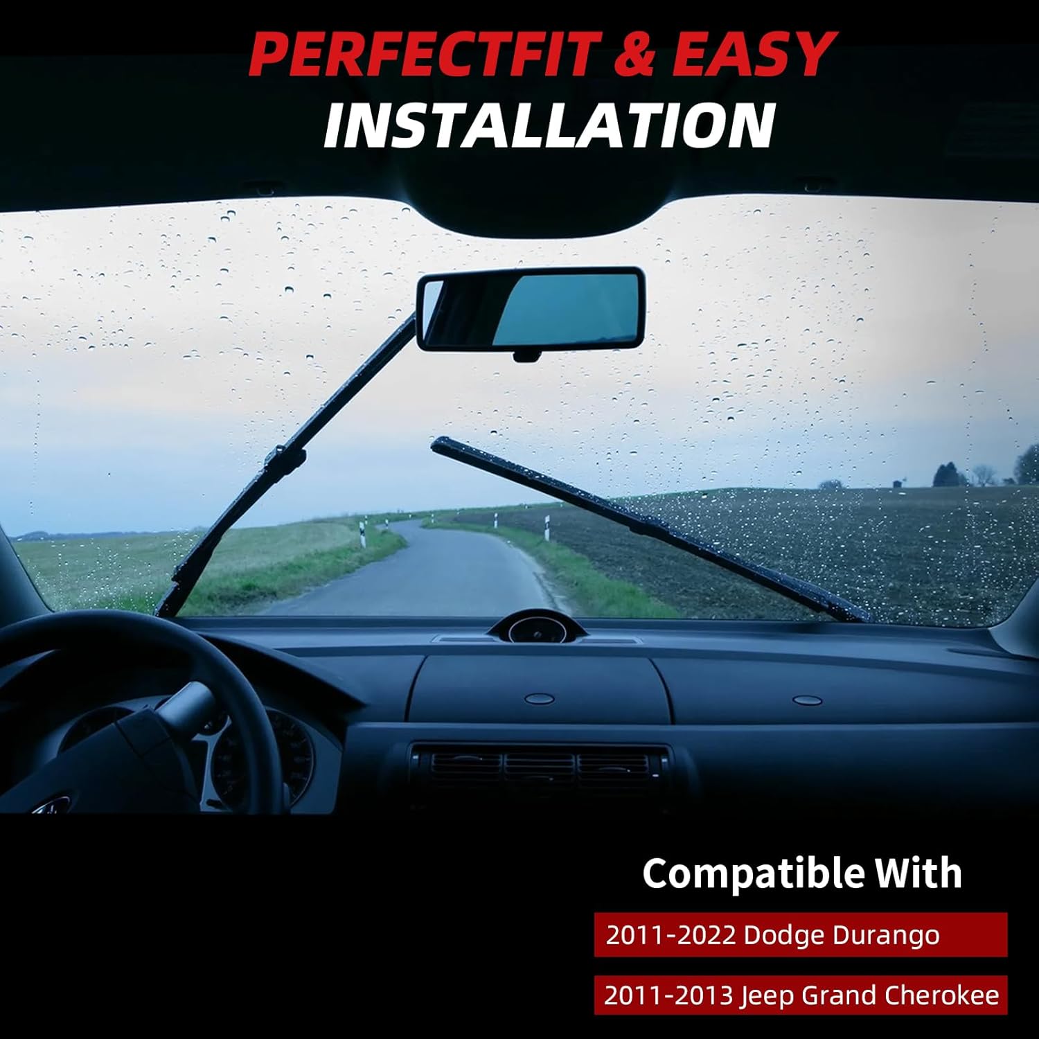 - [22"+21"+12" Perfect Fitment]: Replacement for Dodge Durango 2011-2023, Jeep Grand Cherokee 2011-2013. Our windshield wiper blades are engineered to provide a perfect fit for vehicle models, ensuring optimal performance and coverage