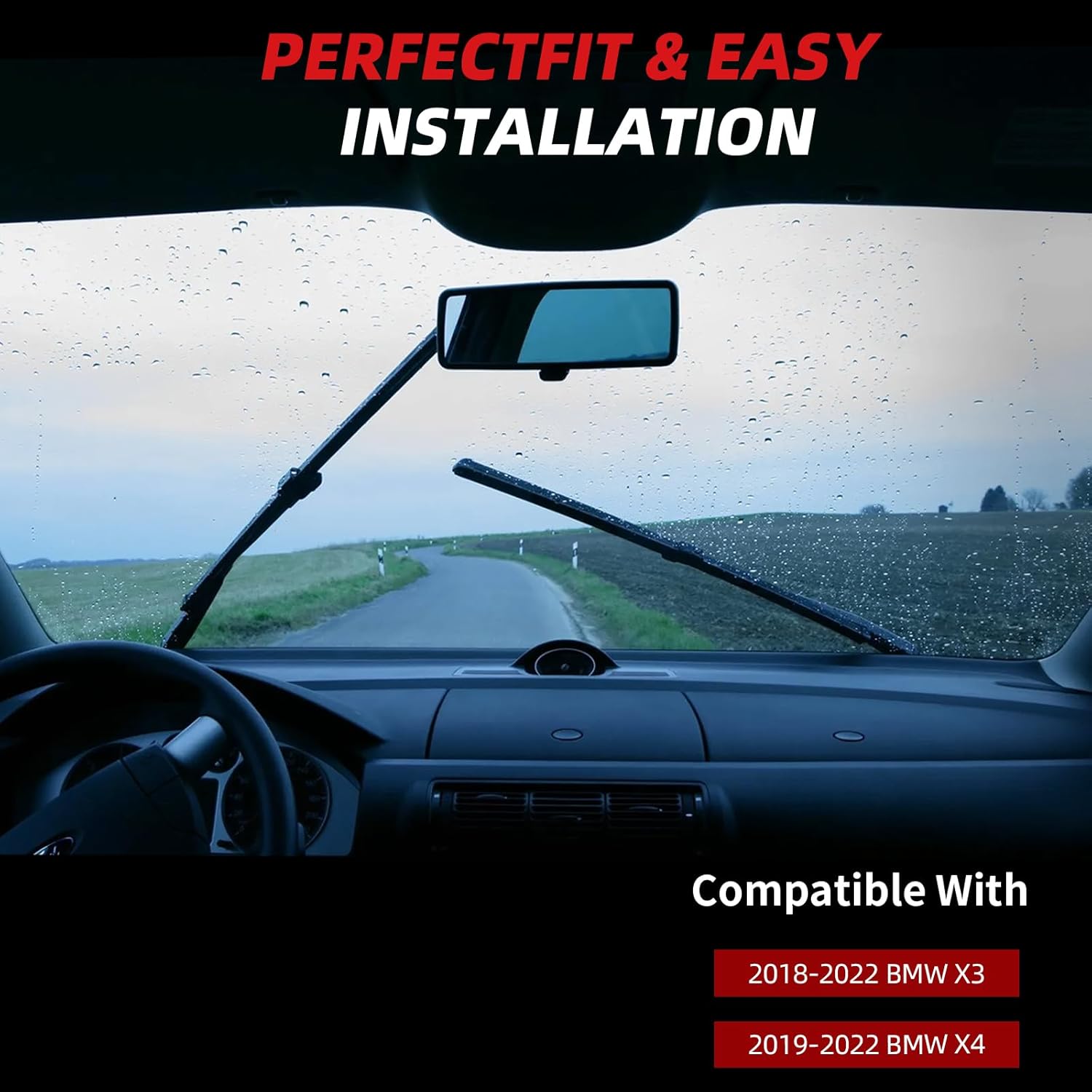- [26"+20"+12" Perfect Fitment]: Replacement for BMW X3 2018-2022, BMW X4 2019-2022. Our windshield wiper blades are engineered to provide a perfect fit for vehicle models, ensuring optimal performance and coverage
