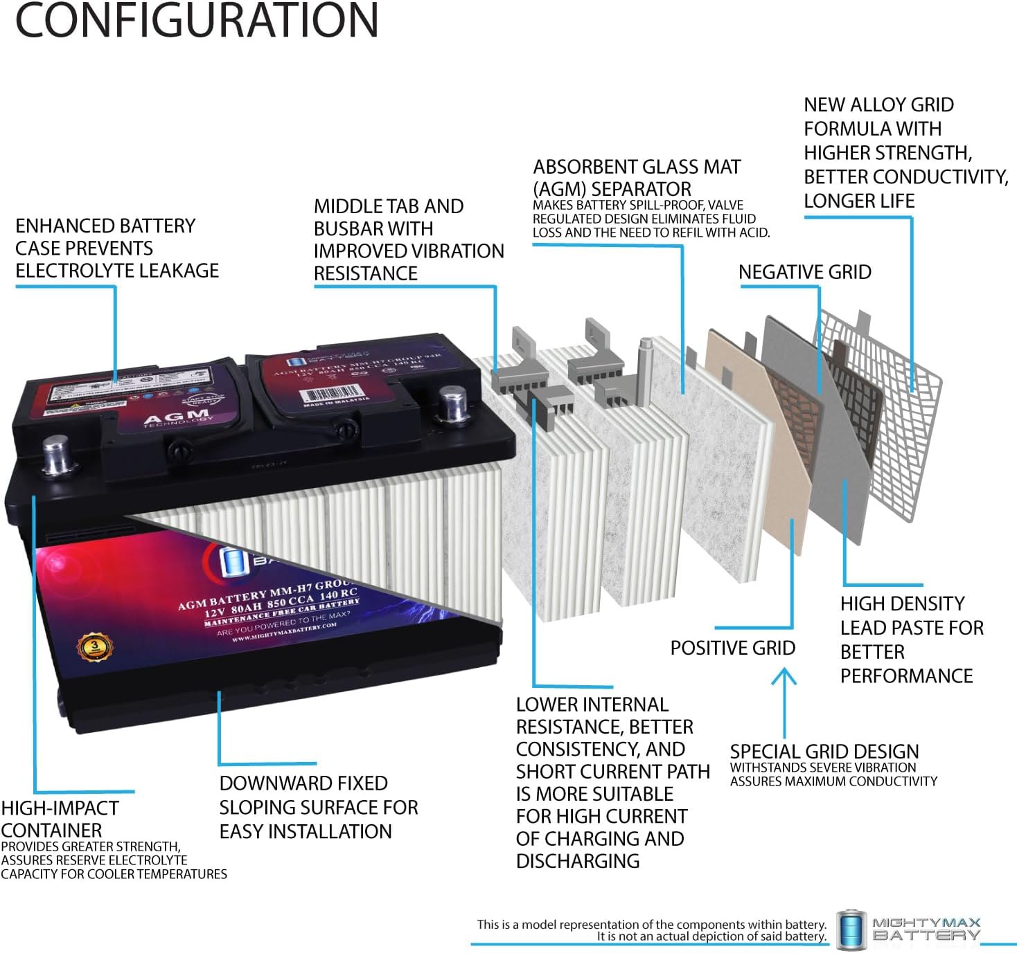 Mighty Max Battery MM-H7 Start and Stop Car BCI Group Size 94R 12V 80AH, 140RC, 850 CCA Rechargeable AGM Car Battery