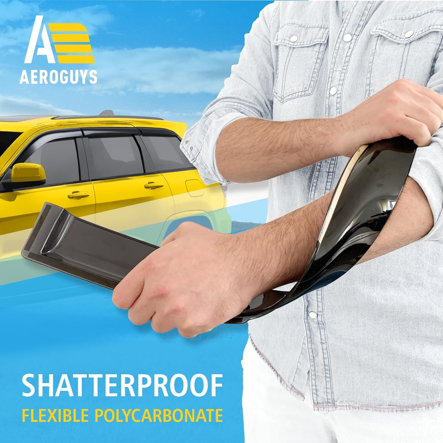 - Incredibly Durable AEROGUYS Auto Window Deflectors – They are made with strong and tough polycarbonate which is clear and scratch-resistant. They also provide UV protection making your ride more comfortable under all weather conditions.
