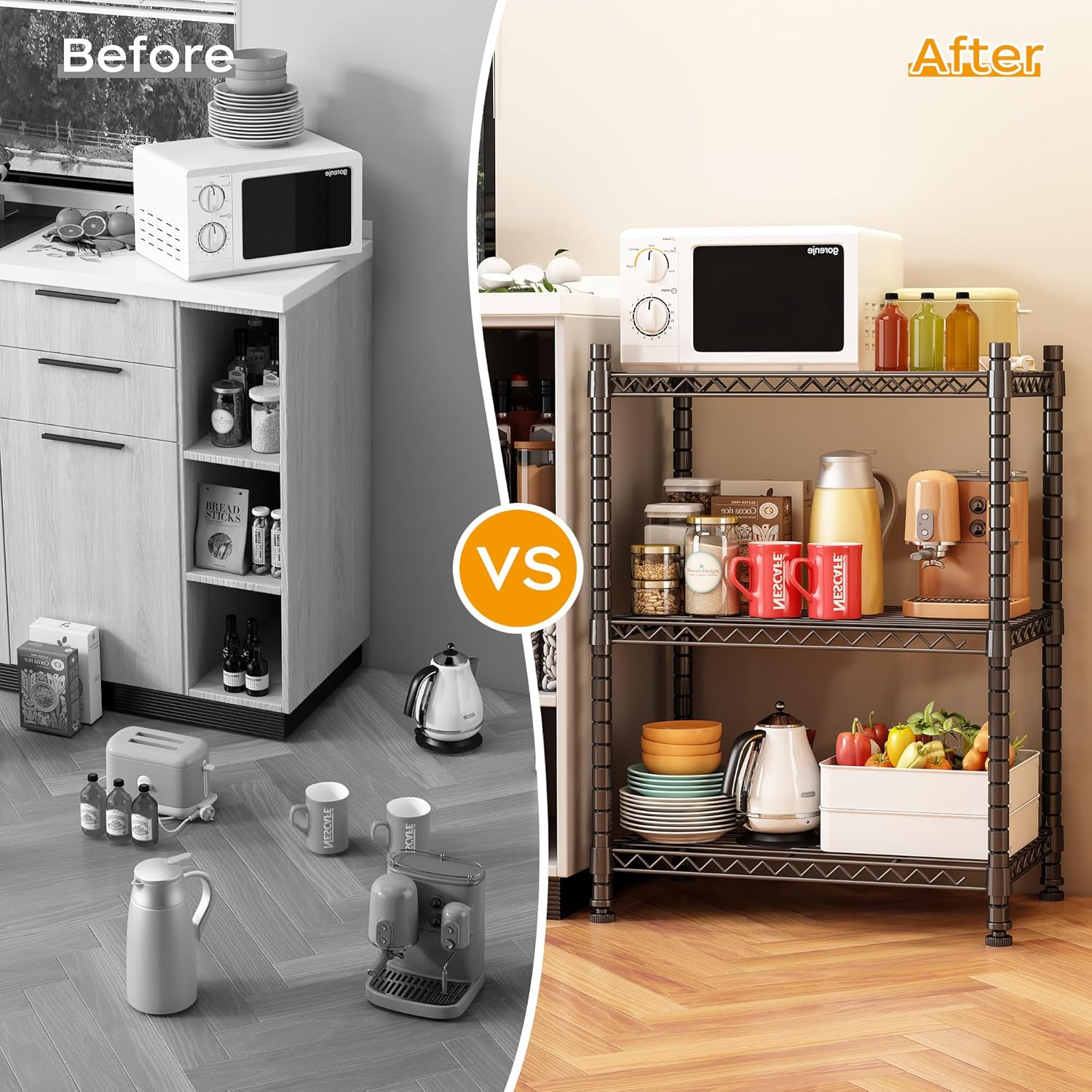 Homeiju 3-Shelf Storage Rack,Adjustable Height Metal Shelving Unit,Heavy Duty Storage Shelving Unit,Wire Rack Shelving,Garage Organizer for Home,Kitchen,Office,Pantry,Garage(13.5"D x 23.4"W x 31"H)