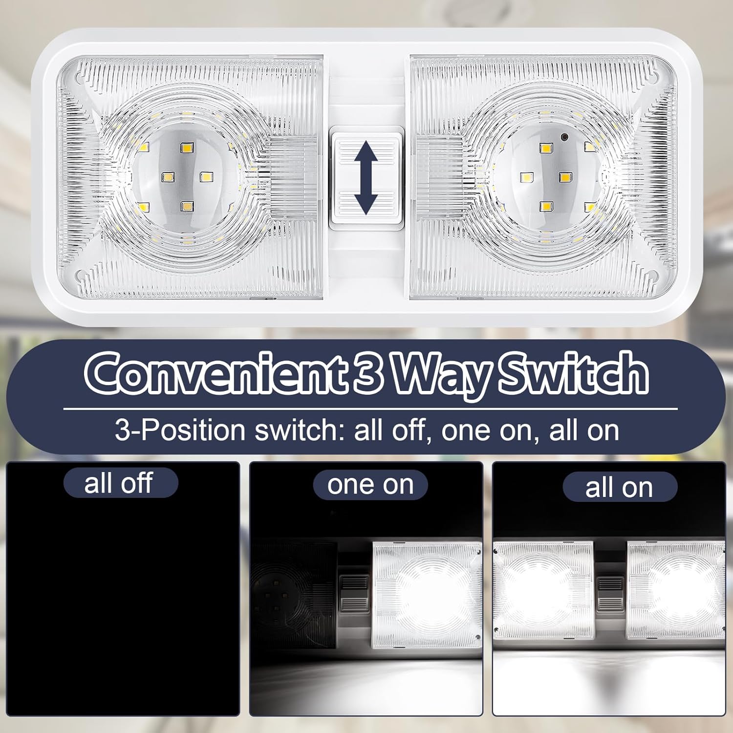 - Versatile Illumination Modes: The camper lights come with a convenient integrated 3-way switch, giving you flexibility with two lighting modes. Simply slide the switch up or down to control each side of the lights separately or together, so you can adjust to any lighting situation hassle-free.