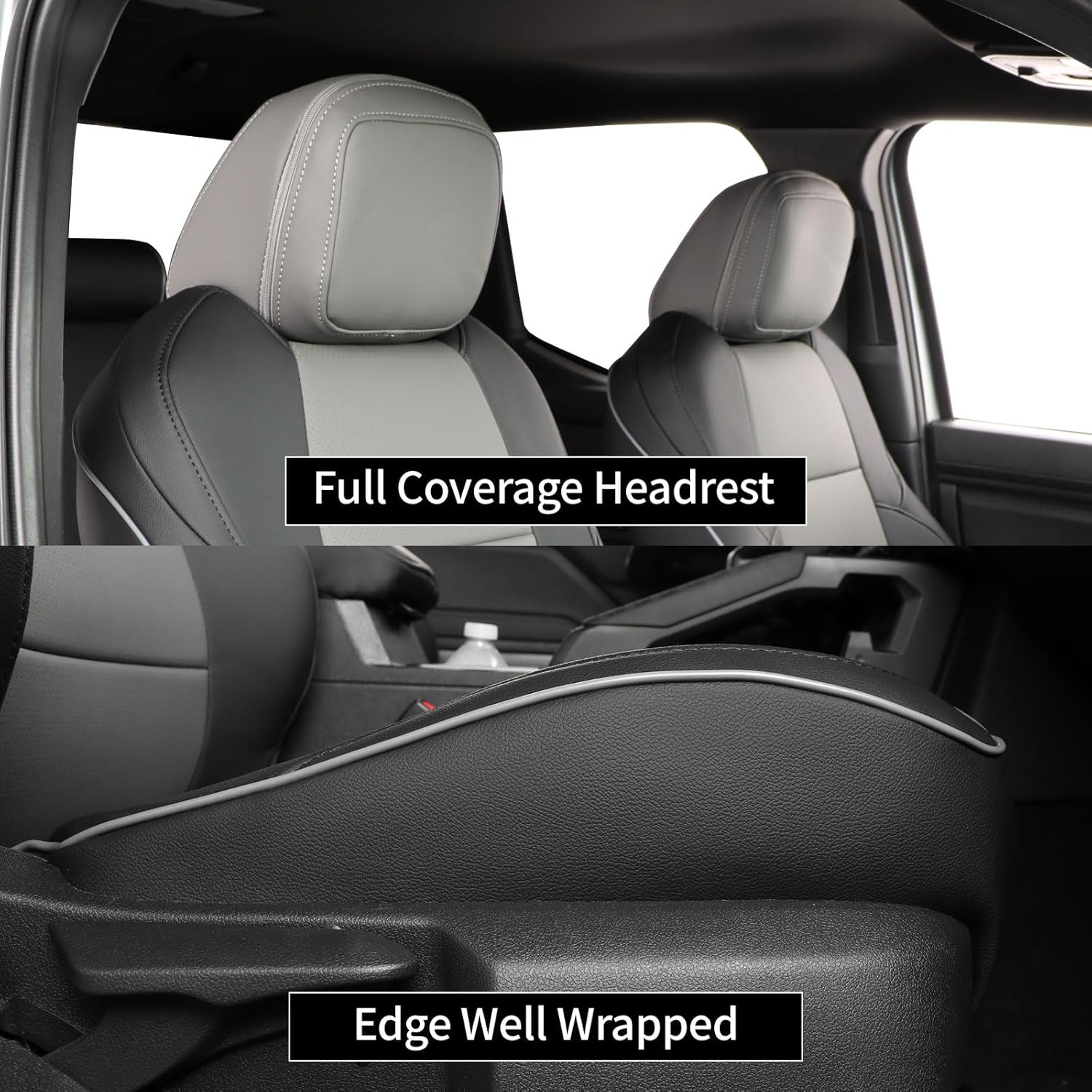 EKR Custom Fit Tacoma Car Seat Covers for Select Toyota Tacoma (Petrol) 2024 2025 Double cab SR,SR5,TRD Sport,TRD Off-Road,Limited -Full Set,Leather(Black/Gray)