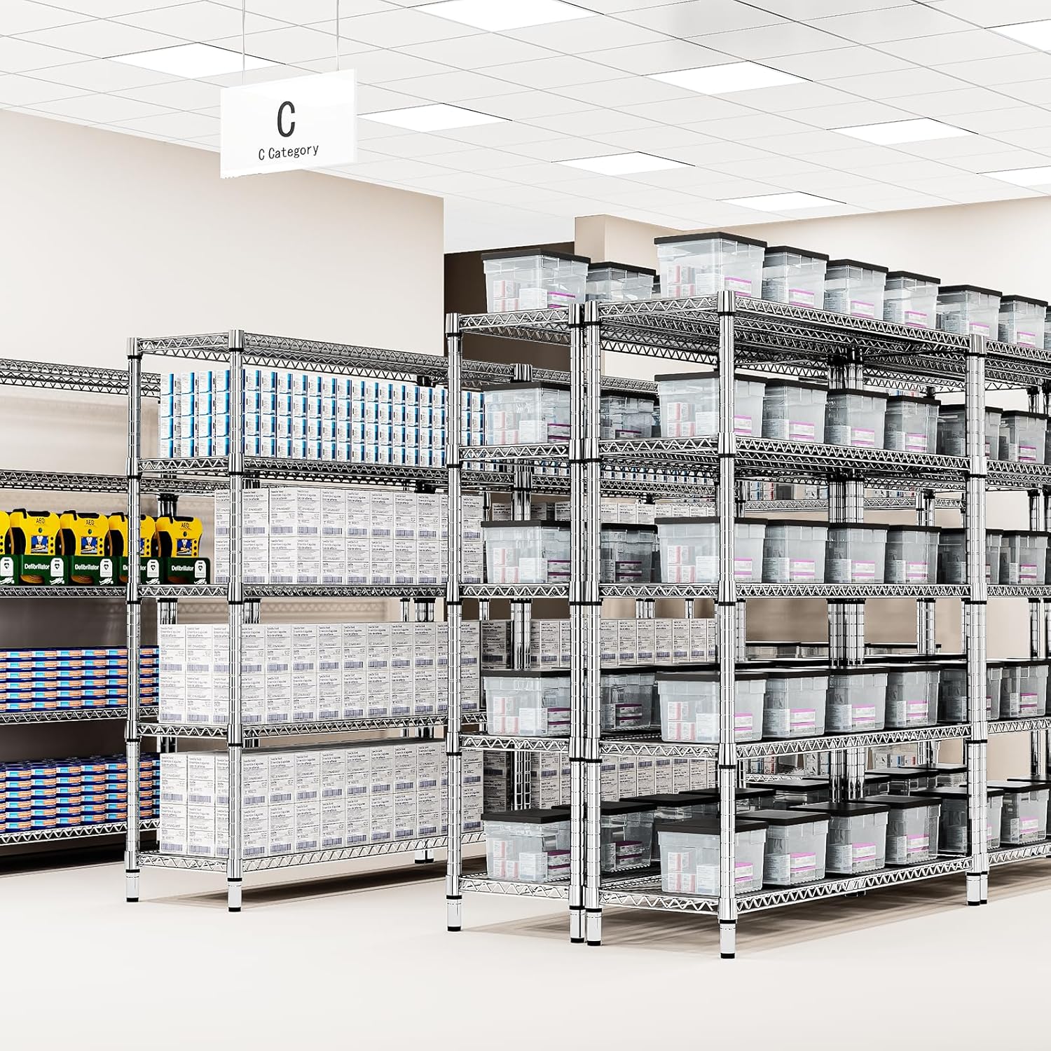 1760 LBs 4 Tier Storage Rack Metal Wire Shelving Unit, Storage Standing Shelf Organizer for Laundry Bathroom Kitchen Pantry Garage Utility Room, Chrome 17.7" D x 59.1" W x 70.4" H