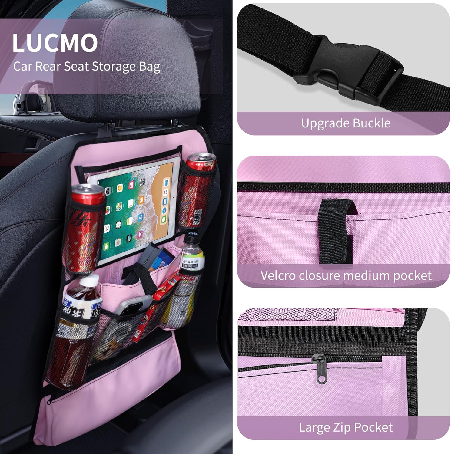 - 【Clear Tablet Holder】LUCMO car backseat organizer with a clear tablet holder for kids,make your children enjoy more fun during family travel.