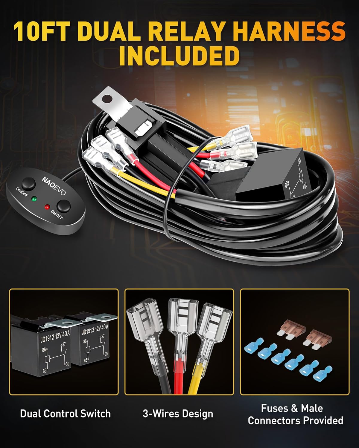 - [Superior Accessories Supplied] - Our 4 inch led fog lights come with a 10ft 2 leads wiring harness, which includes a 40A power relay and inline blade fuses, offering multiple layers of protection and ease of use. Additionally, the 45° adjustable irradiation bracket kit facilitates easy adjustment of the light beam direction, fulfilling your requirement for versatile illumination range!