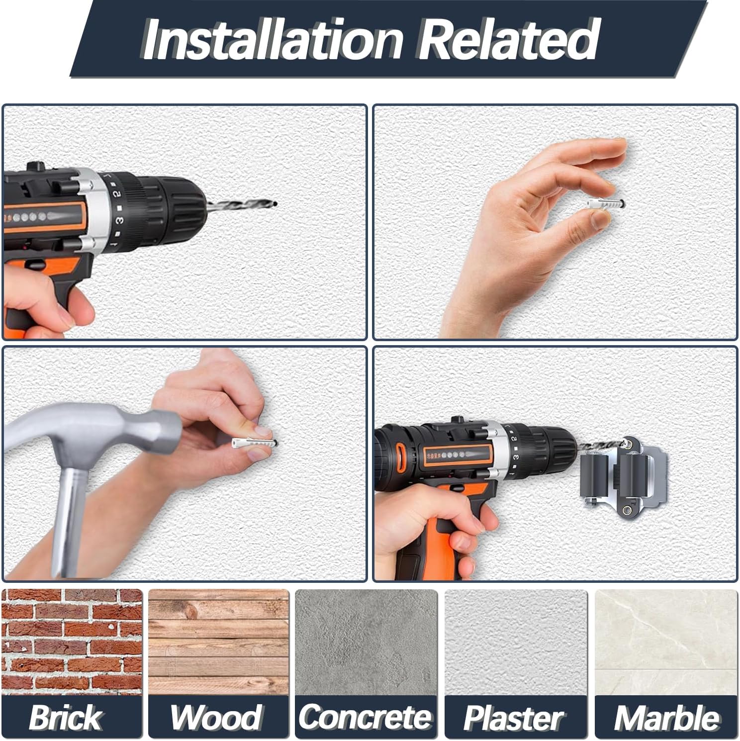- Easy to install - You can easily install 3-H broom holder wall mount in a few seconds, This broom hanger wall mount is suitable for all types wall, no matter smooth surface or rough surface. Such as:marble, wood, metal, ceramics, ceramic tiles, acrylic, plastic surface, non-paint walls, cement, wallpaper, plaster, paint, waxing and brick wall, so please choose your ideal installation location.