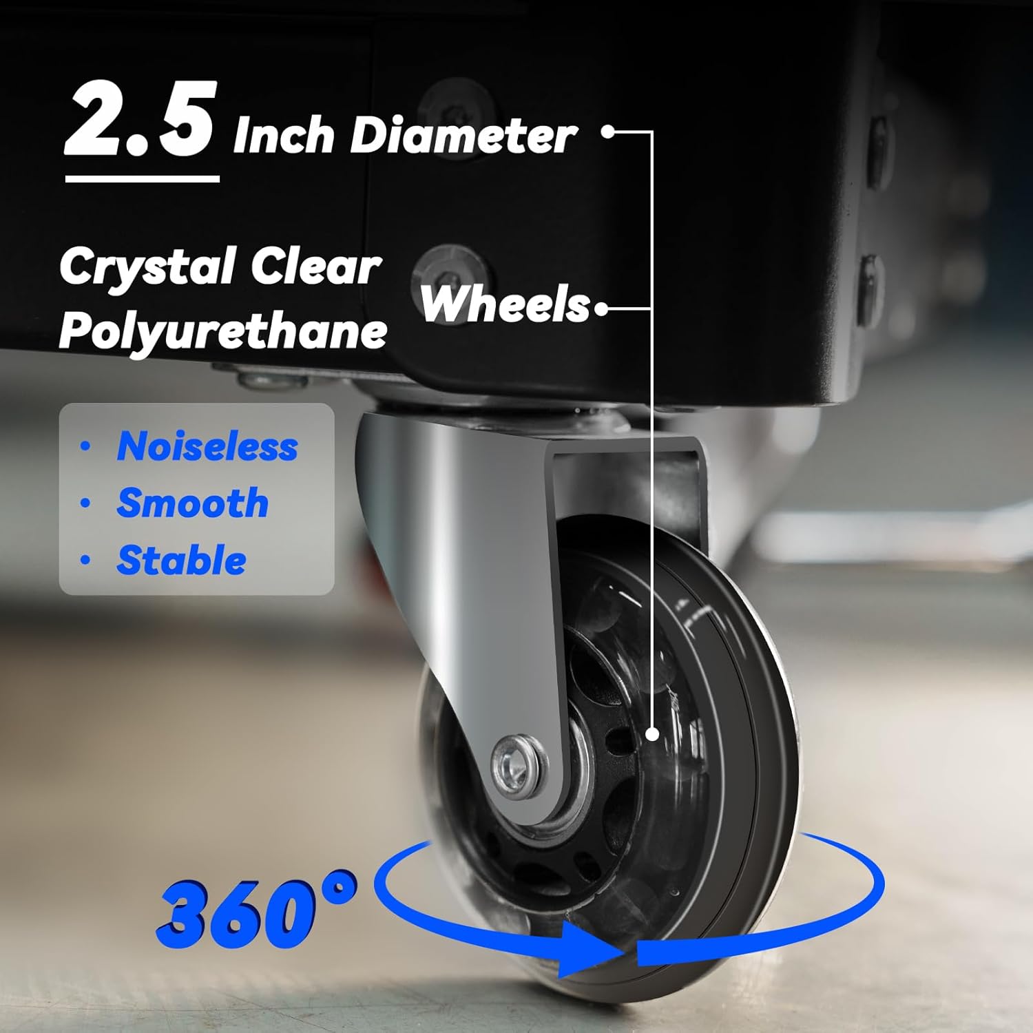 - 【360°& 330 LBS】Equipped with 4 pcs sturdy 2.5"/6.35cm 360° swivel casters. Smooth rolling stool wheels for easily moving around on various floor even on complex surfaces. The heavy duty mechanic creeper is specially designed with a thick angle steel frame for long-lasting performance and reliability. Its design can withstand heavy use, with an overall weight capacity of around 330 pounds. It is a sturdy and practical choice for use in garages, workshops and other places