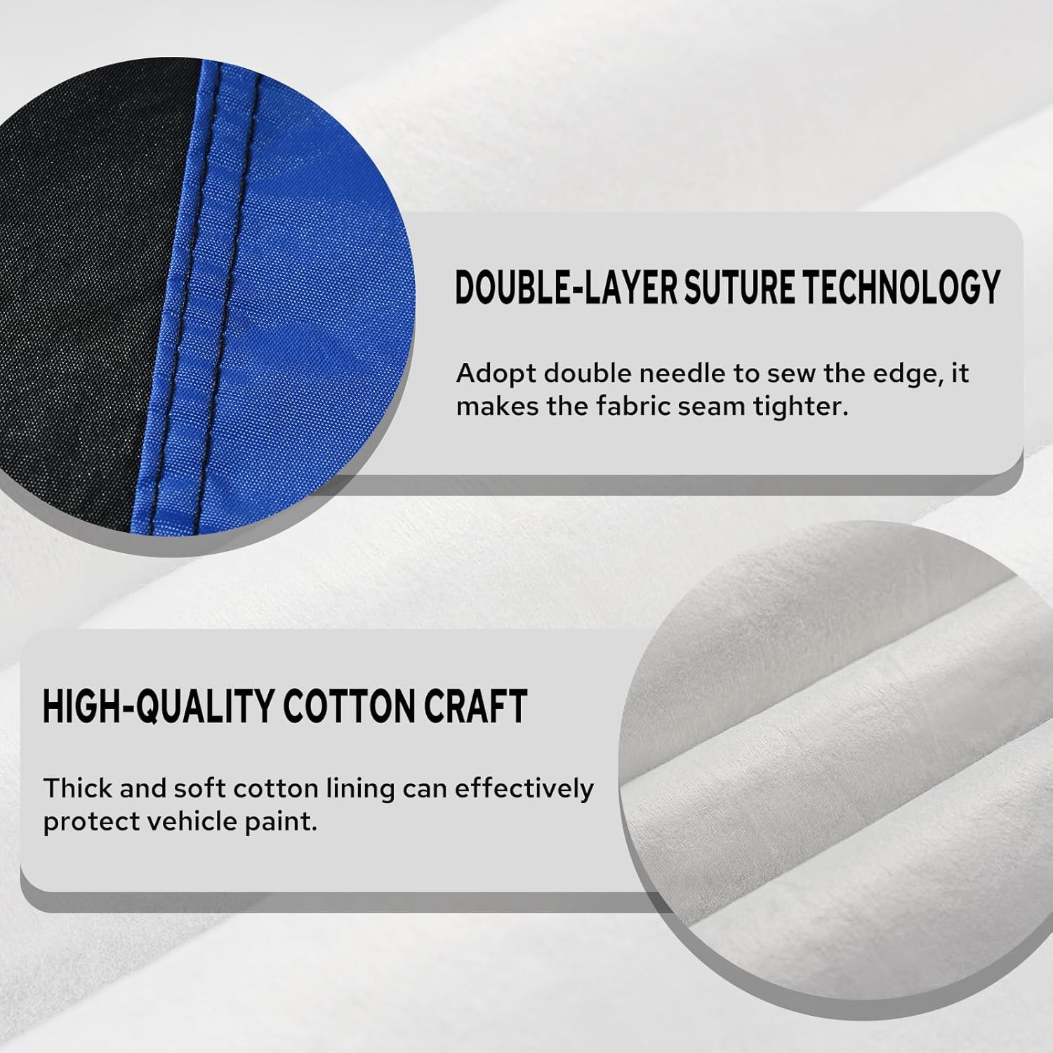 - 【All-Weather Protection】ATHUPEAD all-weather car covers provide comprehensive protection for your vehicle. Whether it is bird droppings, pollen, and tree sap in spring, heavy rain, dust and ultraviolet rays in summer, fallen leaves, acid rain, small animals in autumn, blizzards, hail, and other extreme weather in winter. As long as you have ATHUPEAD all-weather car cover, you will say goodbye to those annoying things and enjoy the fun in different seasons.
