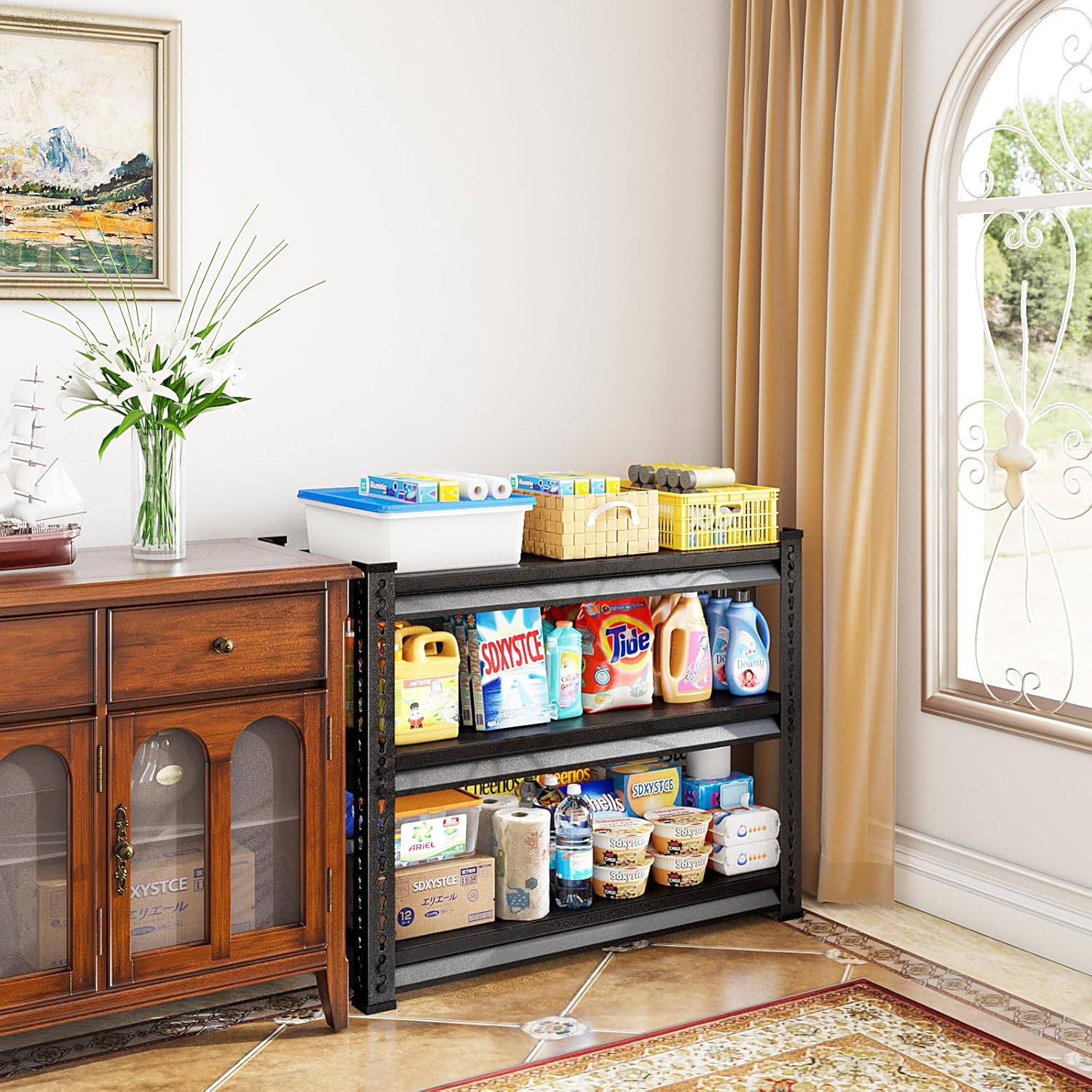 - 【Large Load Capacity】Our metal shelving unit and storage is improvement for stability and strength from the traditional rack shelves.The solid thickened metal shelves with big ribs beneath , offers capacity of 1350 lbs for organizing heavier items or breeder tanks.