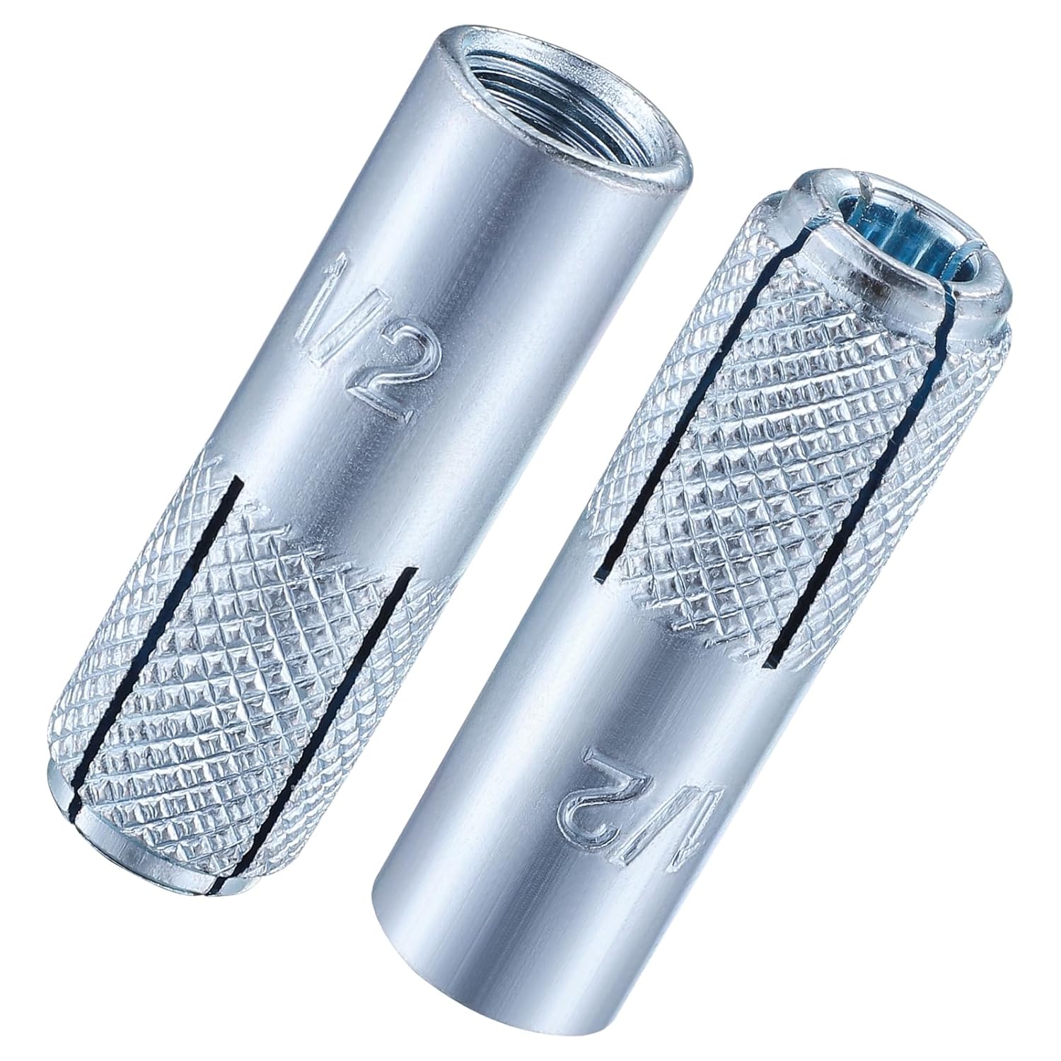 Wensilon(20 pcs) 1/2"-13 Premium Zinc Plated Carbon Steel Drop in Anchors Assortment, Knurled Drop-in-Anchor for Solid Concrete, Internal Forced Expansion Screw Bolts