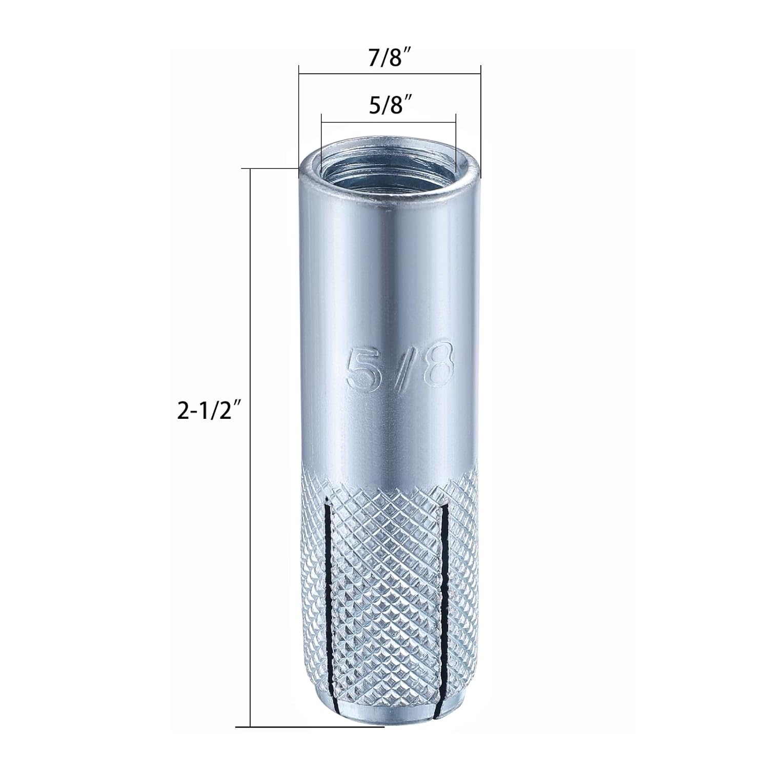 - [Function] 5/8" Inch premium iron material knurled drop in anchors: 2-1/2" hole depth and 7/8" hole diameter, use with 5/8-11 bolt.