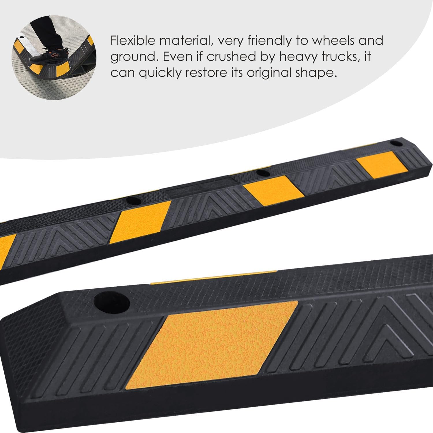 72" in 6' Ft Heavy-duty Rubber Parking Curb, Installation Kits Included, Parking Garage Floor Stopper, Wheel Stopper for Vehicles Truck Driveway Protect Cars Vans Trucks Pumpers (72" - 2Pack)