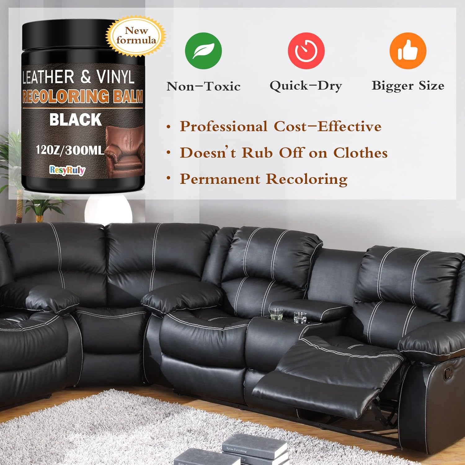 - Leather Recoloring Balm Black - Restore the look of your favorite old, worn leather items and make them look brand new with our leather restorer for couches. It works best in revitalizing your arm rests and leather upholstery with ease. This leather fix repair kit is the perfect way to restore your precious leather vinyl faux items back to their original condition. With this black leather repair kit, your leather pieces will be transformed in no time.