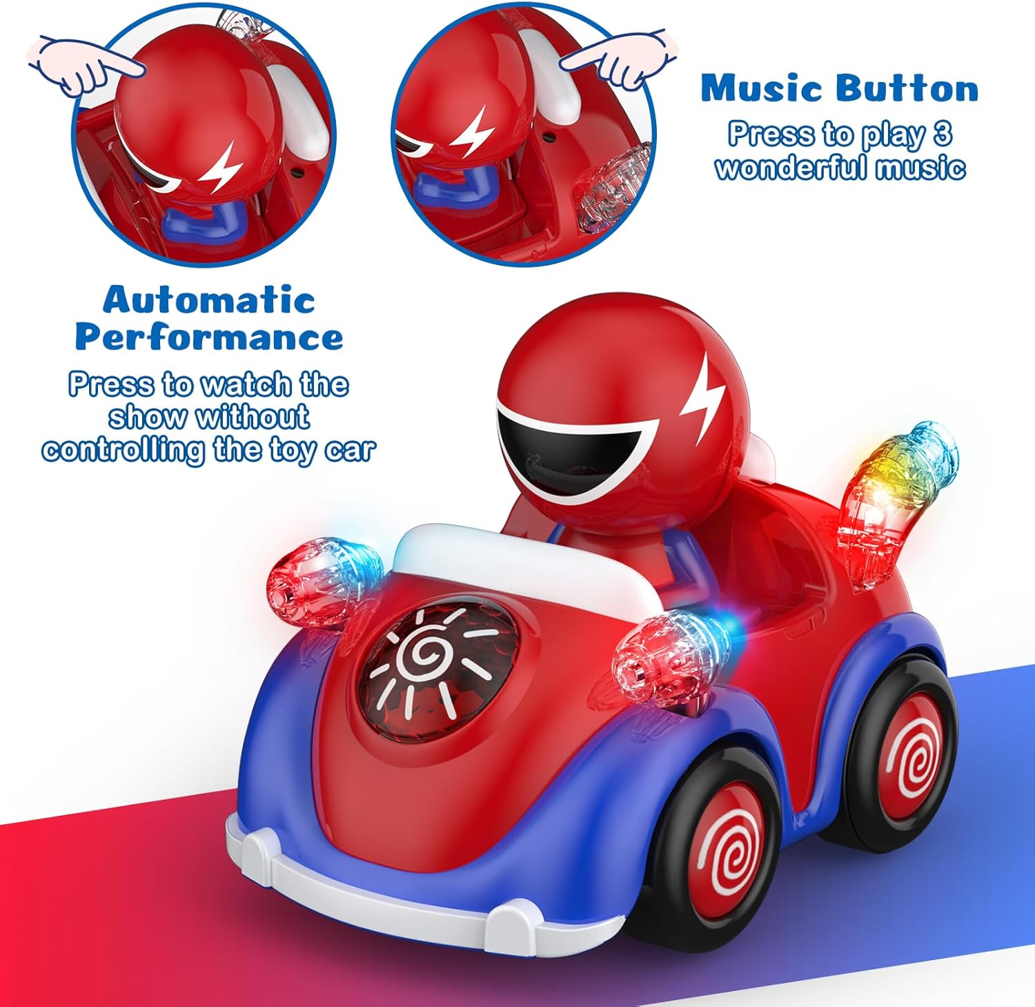 - 【Cute Spider Design with Lights & Music】Designed as a cartoon superhero and equipped with flashing lights and 3 cheerful music, our spider toy car wakes up the kids' curiosity, attracts their attention, and provides hours of joyful play